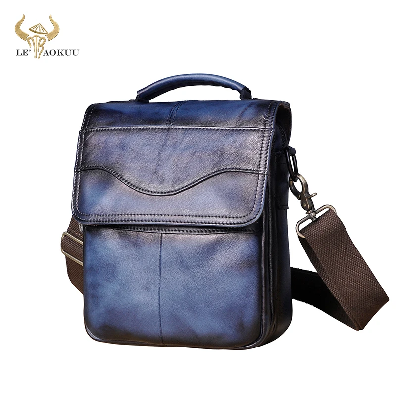Качественная кожаная мужская повседневная дизайнерская школьная сумка-мессенджер через плечо, модная синяя сумка-тоут для планшета колледжа 8 дюймов, сумка-ранец 144