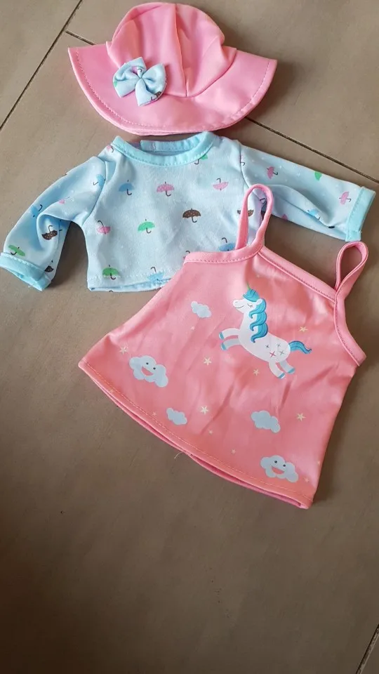 Cute clothes. Fits for smaller than 43cm doll. About 37cm is more accurate. But we like them for another doll.
