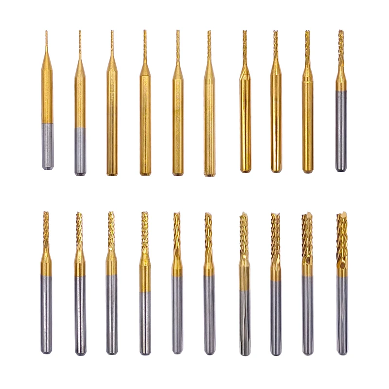Набор концевых фрез, комплект из 10 твердосплавных насадок 0,6-3,175 мм, из ПП кукуруза, хвостовик 3,175 мм, для печатных плат, гравировки, по металлу