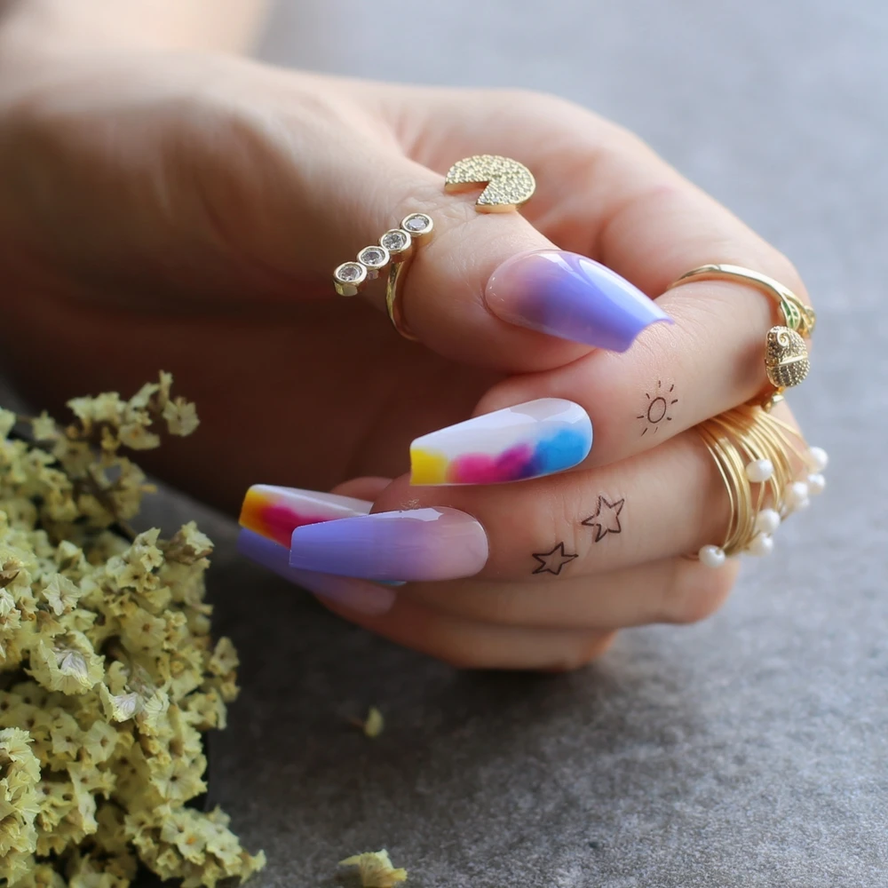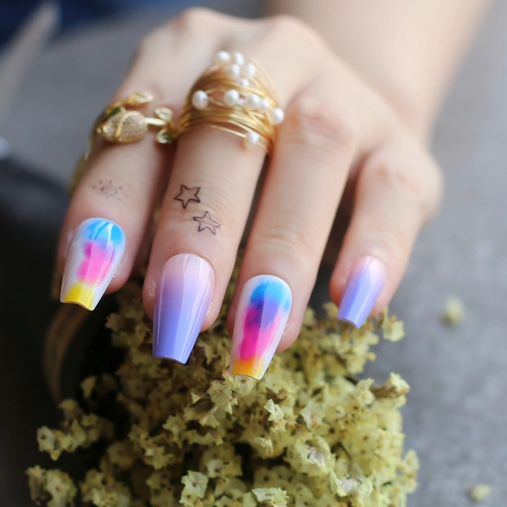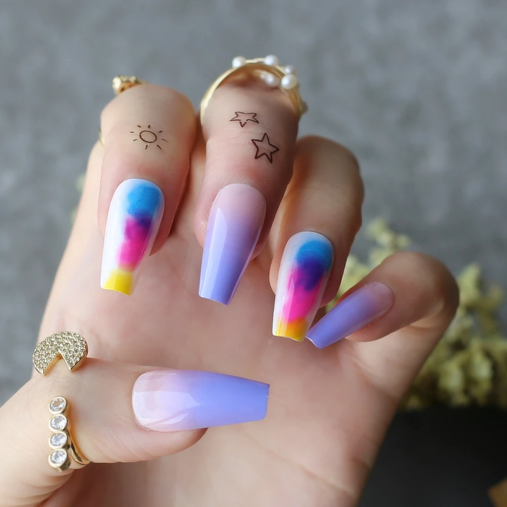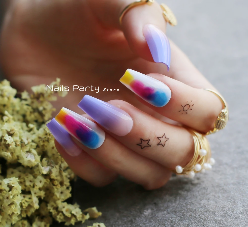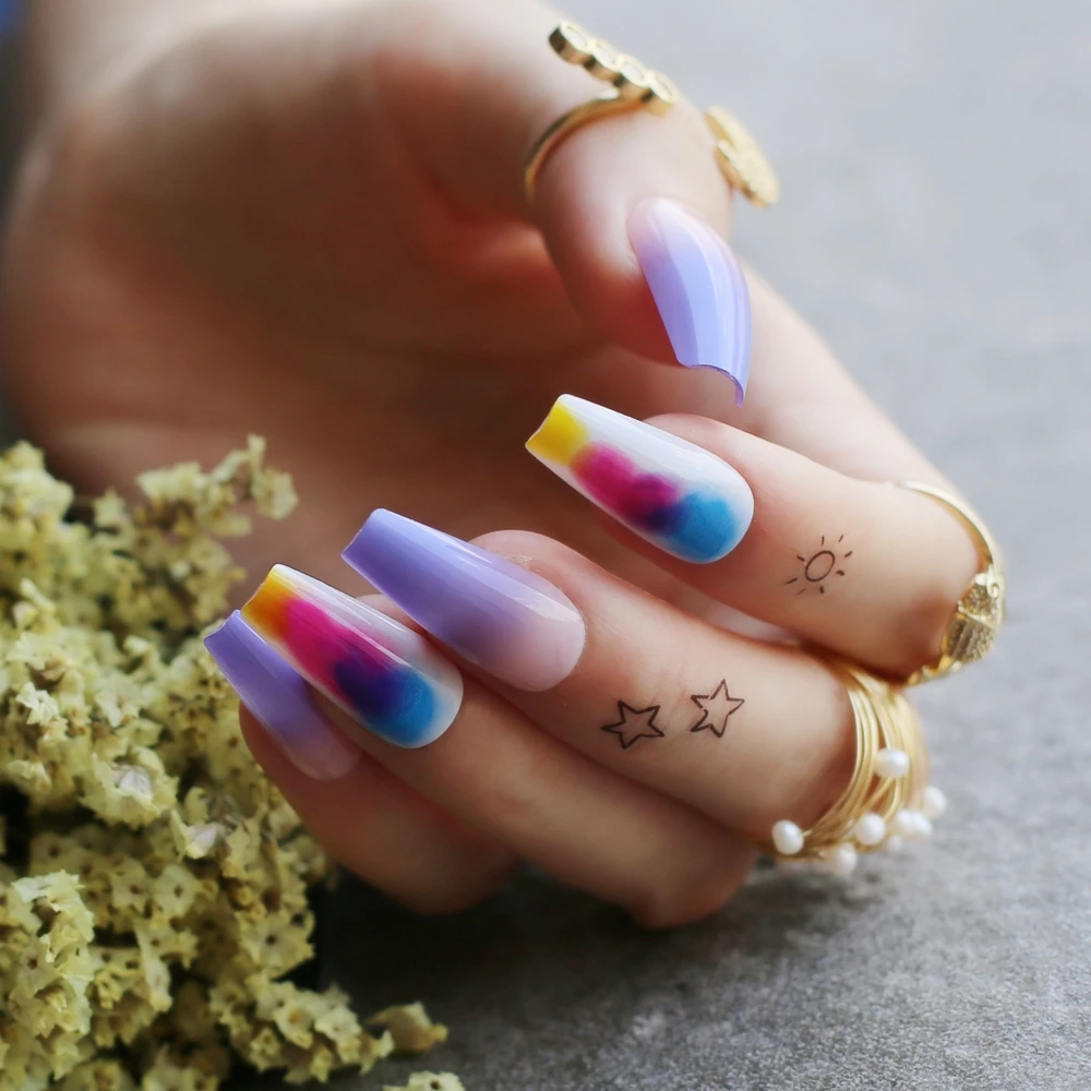 Накладные ногти лавандового, фиолетового, телесного цвета, с эффектом омбре