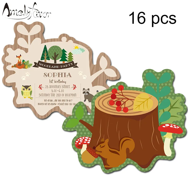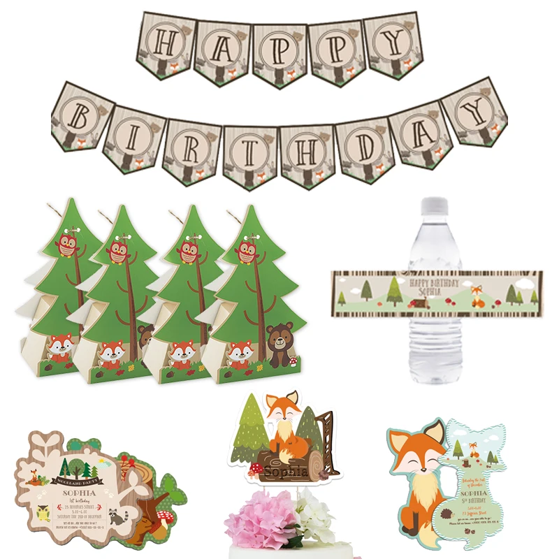 Искусственная коробка с животными в лесу, пригласительные сумки, топпер для торта, ярлык для бутылок, баннер, подвесная фотография