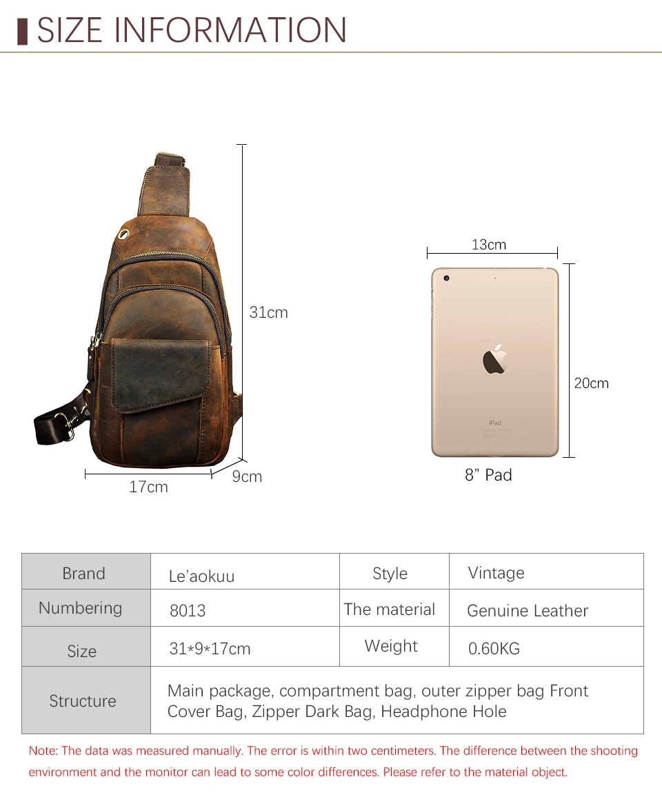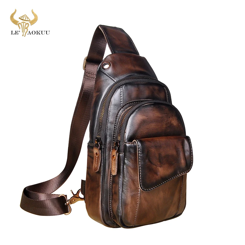 Натуральная коровья кожа, Мужская кофейная модная дорожная сумка с треугольным нагрудным ремешком, дизайн 8 дюймов, планшет, сумка на одно плечо, рюкзак для мужчин, 8013