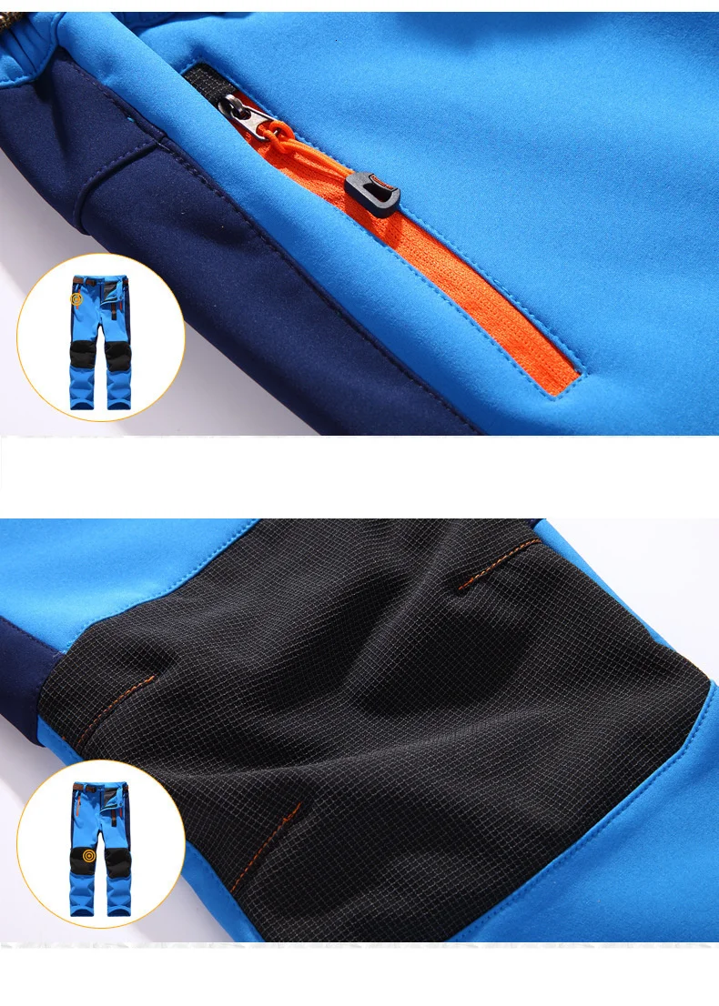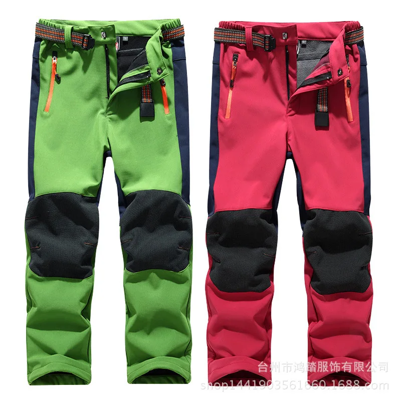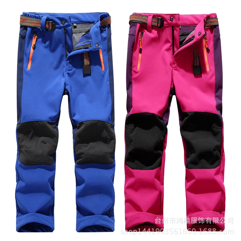 Брендовые водонепроницаемые осенние детские брюки для мальчиков и девочек, теплые спортивные брюки для альпинизма, Детские наряды в стиле пэчворк с мягкой оболочкой, одежда