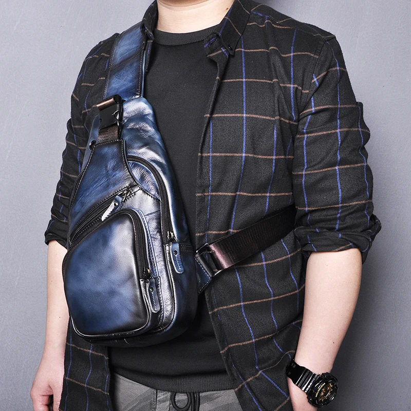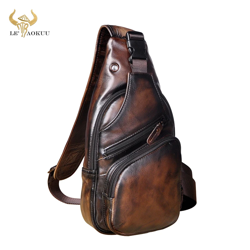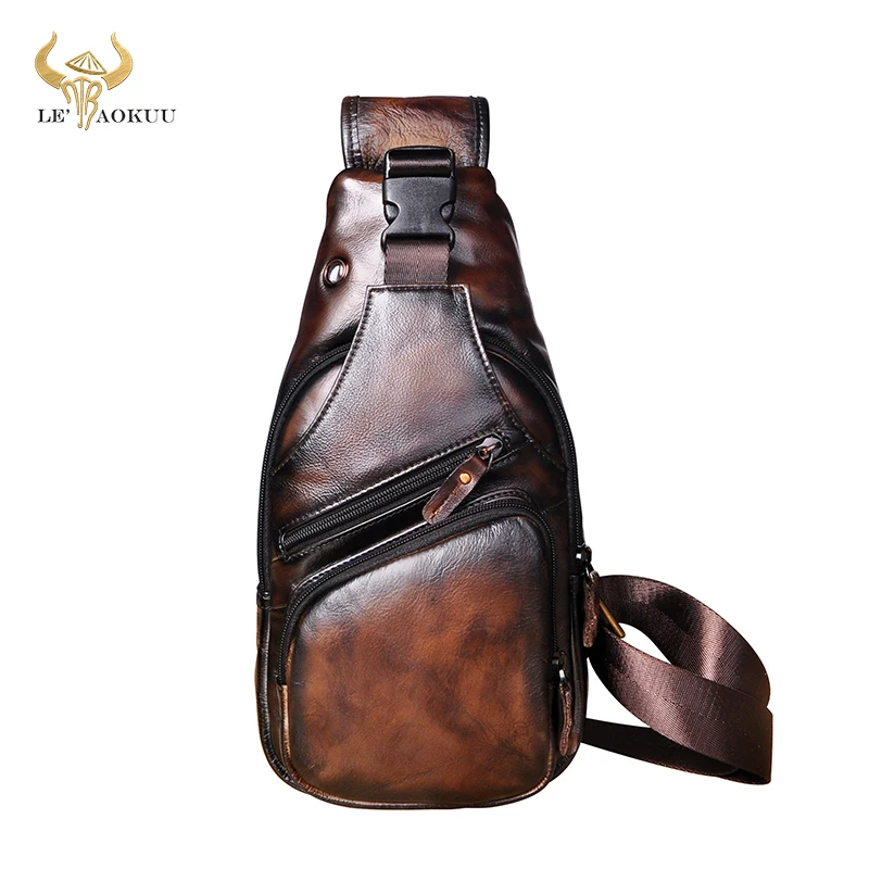 Качественная кожаная мужская повседневная кофейная модная дорожная сумка с треугольным нагрудным ремешком, дизайн 8 дюймов, сумка на плечо для планшета, рюкзак для мужчин 8015