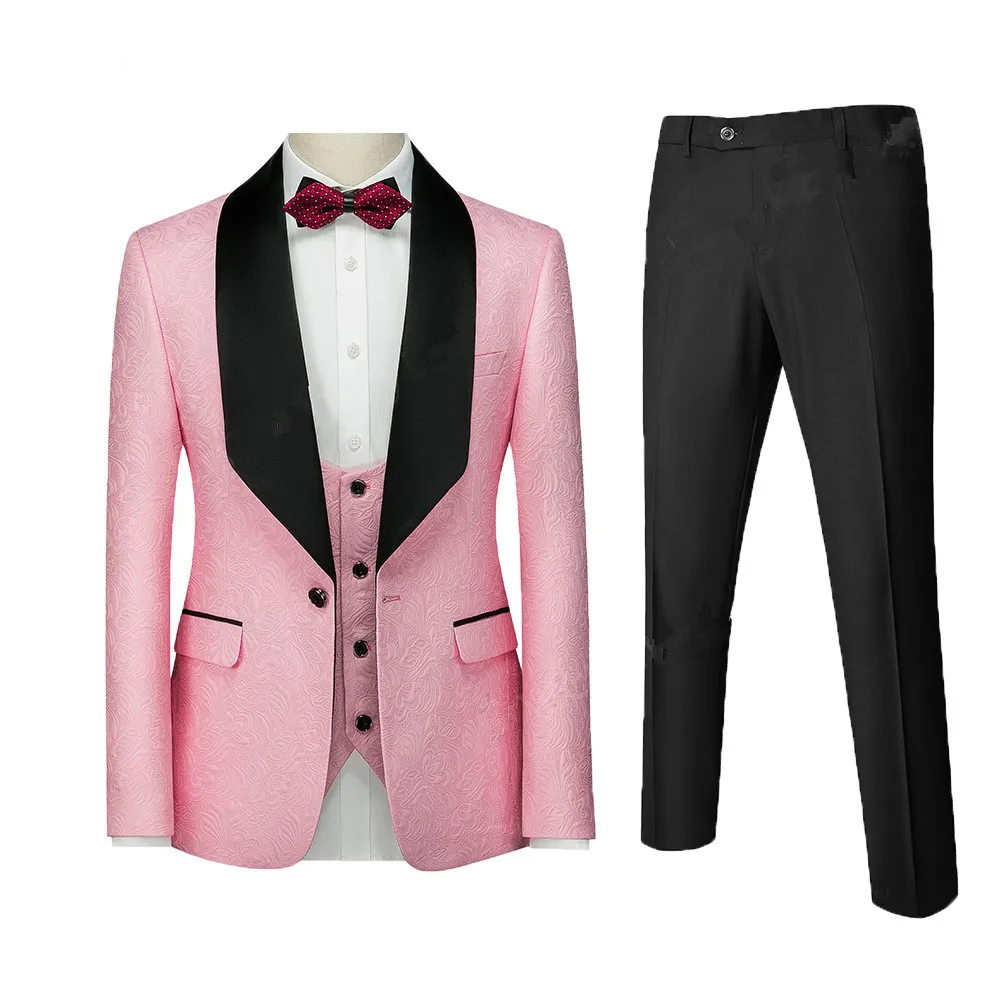 Мужские костюмы цвета слоновой кости из 3 предметов, жаккардовые Черные смокинги с воротником-шалью и брюками для свадьбы, Мужские костюмы (Блейзер + жилет + брюки)