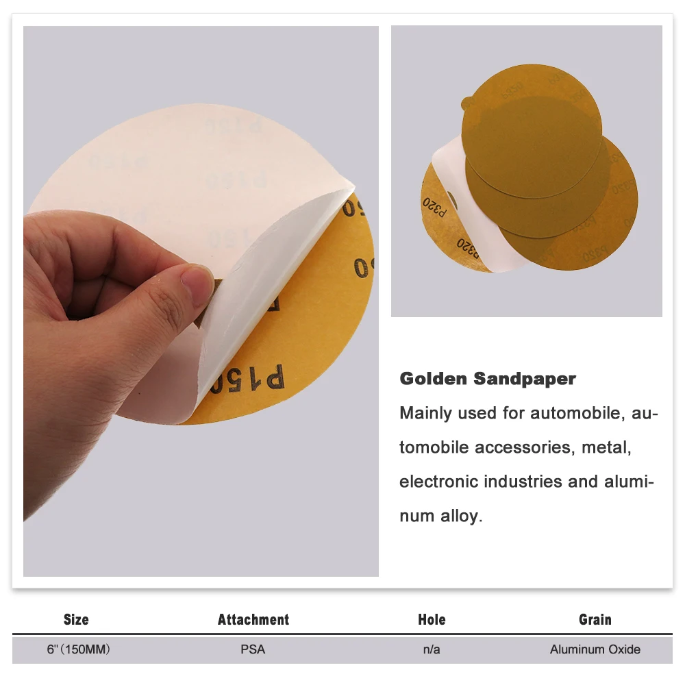 PSAклейкая Золотая наждачная бумага-6 дюймов 150 мм шлифовальные диски из оксида алюминия от 60 до 1000 грит для полировки и шлифования