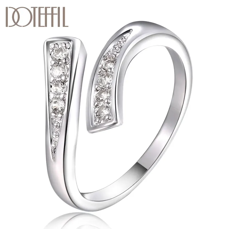 Женское Открытое кольцо DOTEFFIL из стерлингового серебра 925 пробы с цирконием AAA, модные свадебные вечерние ювелирные изделия с подвесками