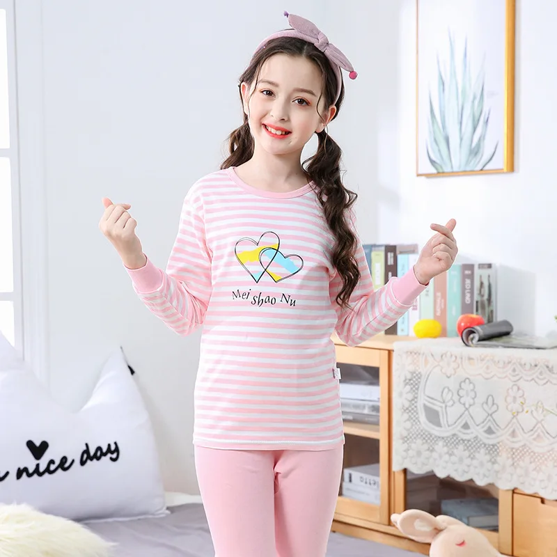 Подростковая Пижама, хлопковые пижамы с длинными рукавами, комплект...