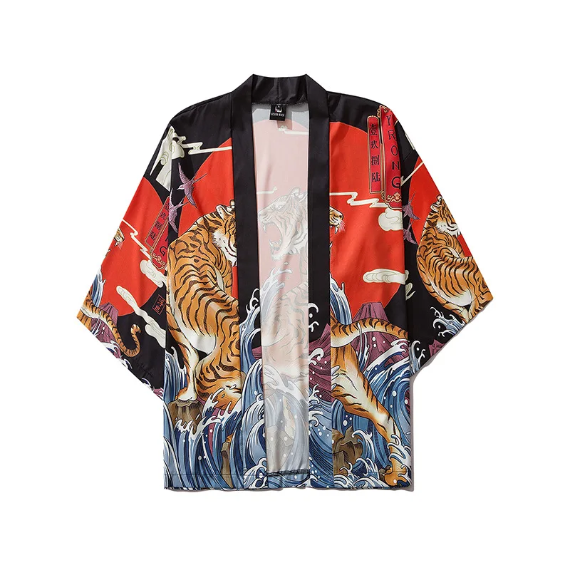 Кимоно мужское традиционное в японском стиле с принтом тигра, уличный кардиган в стиле Харадзюку, юката, хаори Оби, 15 видов