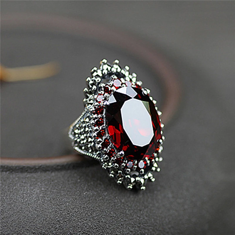 Винтажное обручальное кольцо с красной стразы, Женское кольцо с кри...