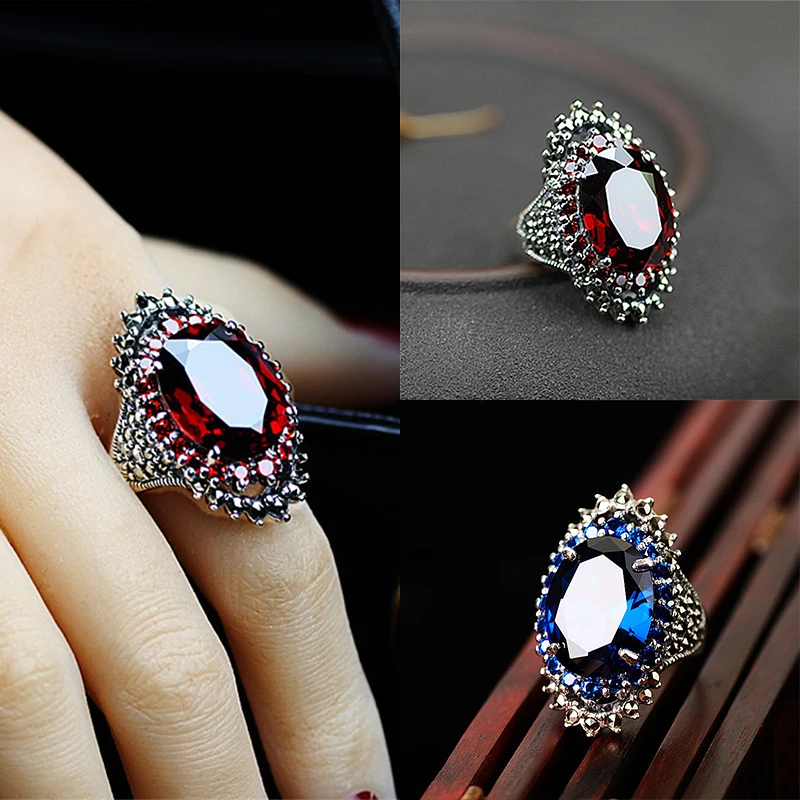Количество: 1 шт. Материал: серебро Цвет: красный, синий Пол: женщин Размер: 6 7 8 9 10 11 12 Стиль: Кольцо Свадьба, Винтаж, вечерние, красный