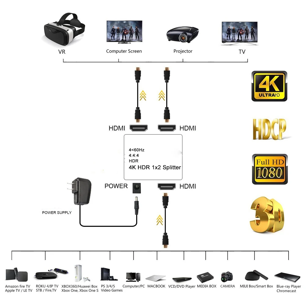 1 в 2 OUT 4K 60HZ HDMI сплиттер