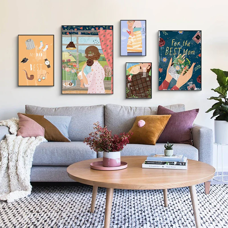 Настенная картина из мультфильма СемьЯ на холсте, картина на День Матери и отца, Постер в скандинавском стиле Любовь Куадрос, настенные картины для гостиной