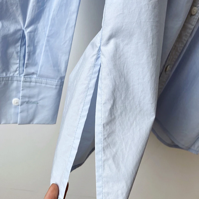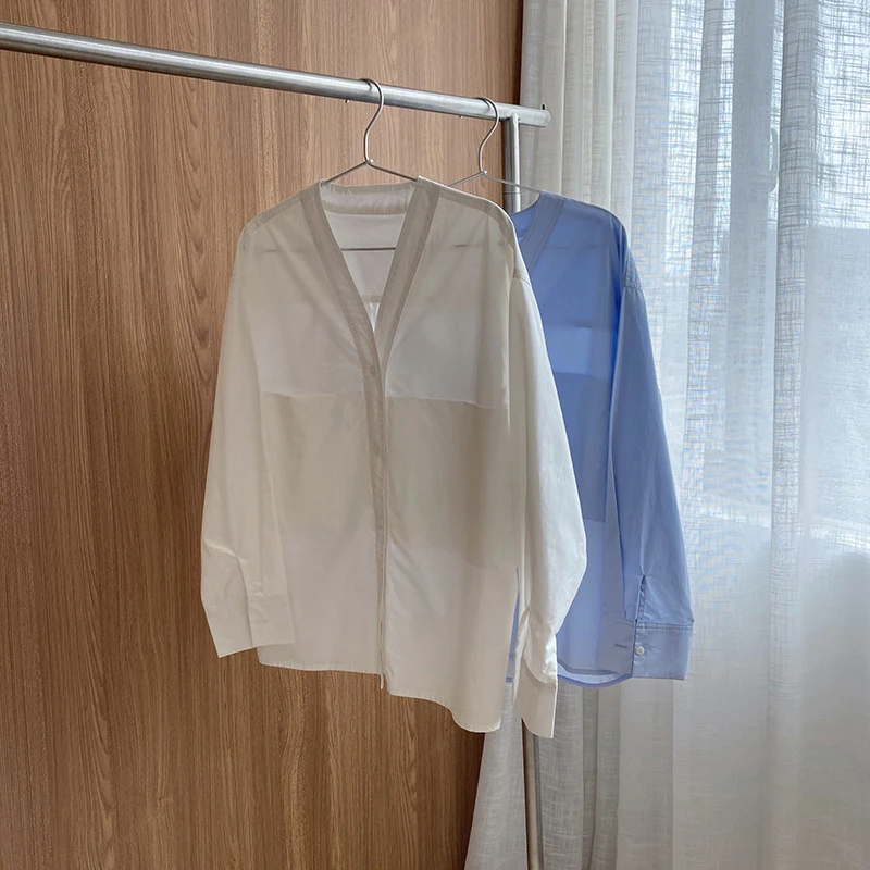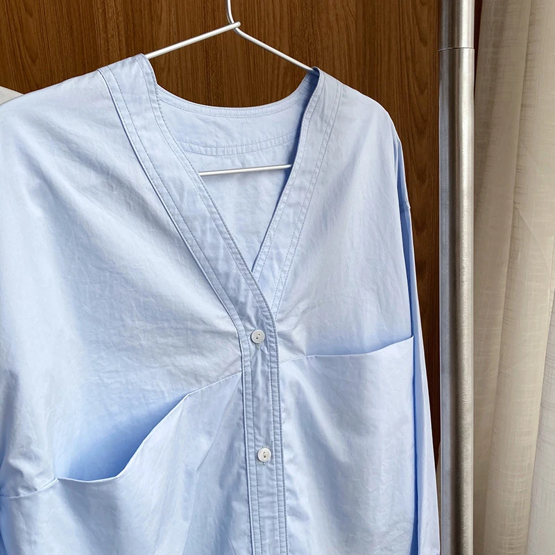 Блузка GOPLUS женская с V-образным вырезом, винтажная блузка оверсайз в Корейском стиле, голубые и белые топы, C10659