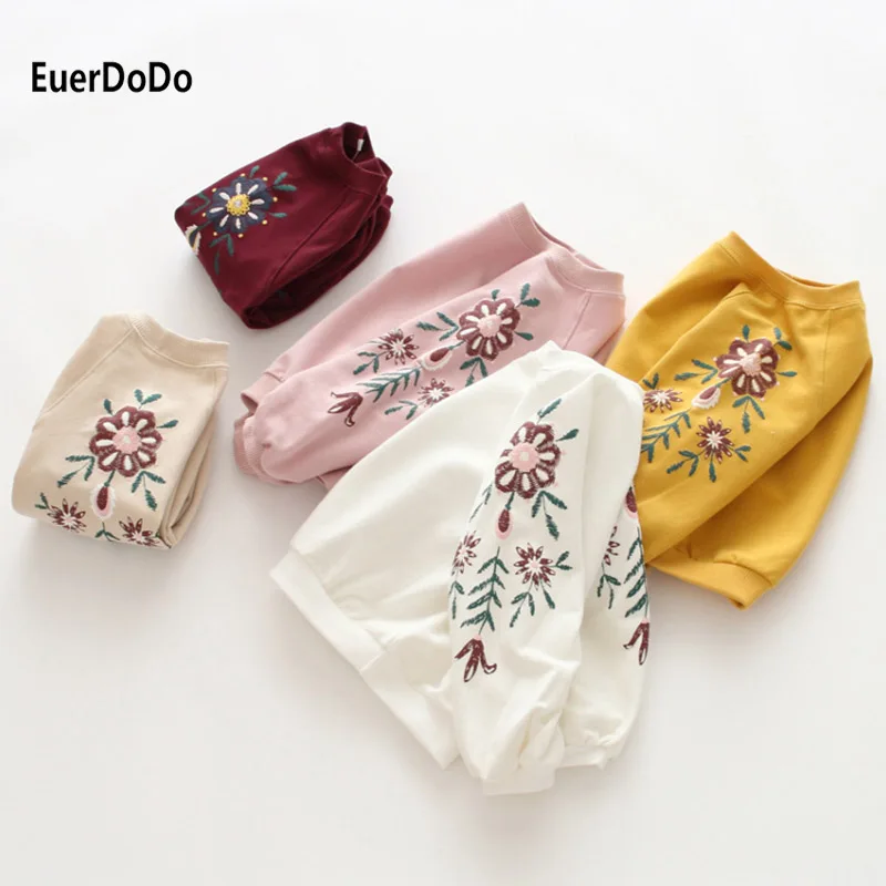 2020 толстовка с капюшоном для девочек, футболки с длинными рукавами, блузки, Детские весенне-осенние свитшоты, одежда, От 2 до 12 лет, Детский свитер с цветами, топы