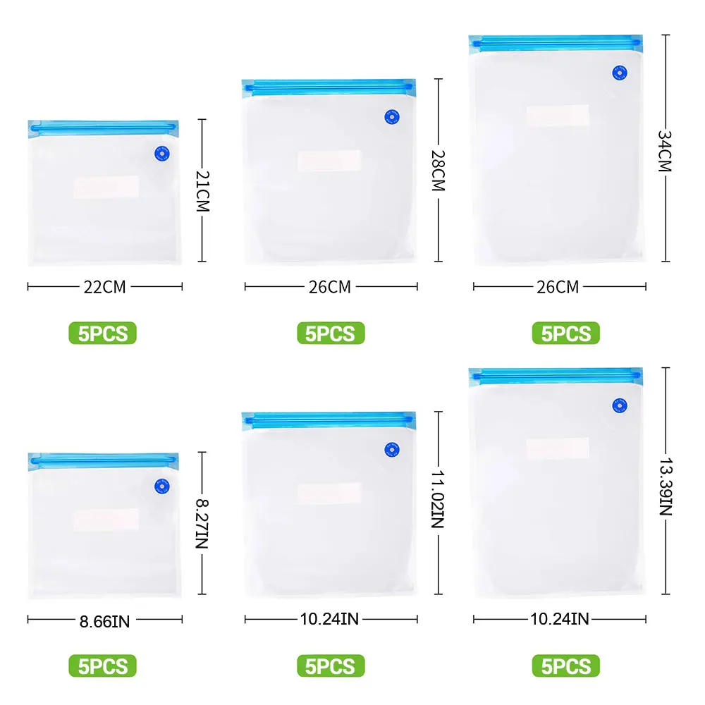 20 шт.: 5 небольших пакетов + 5 Сумка среднего размера + 5 больших пакетов + 1 Вакуумный насос + 2 пластиковых зажима для запечатывания + 2 зажима для вакуумного мешка