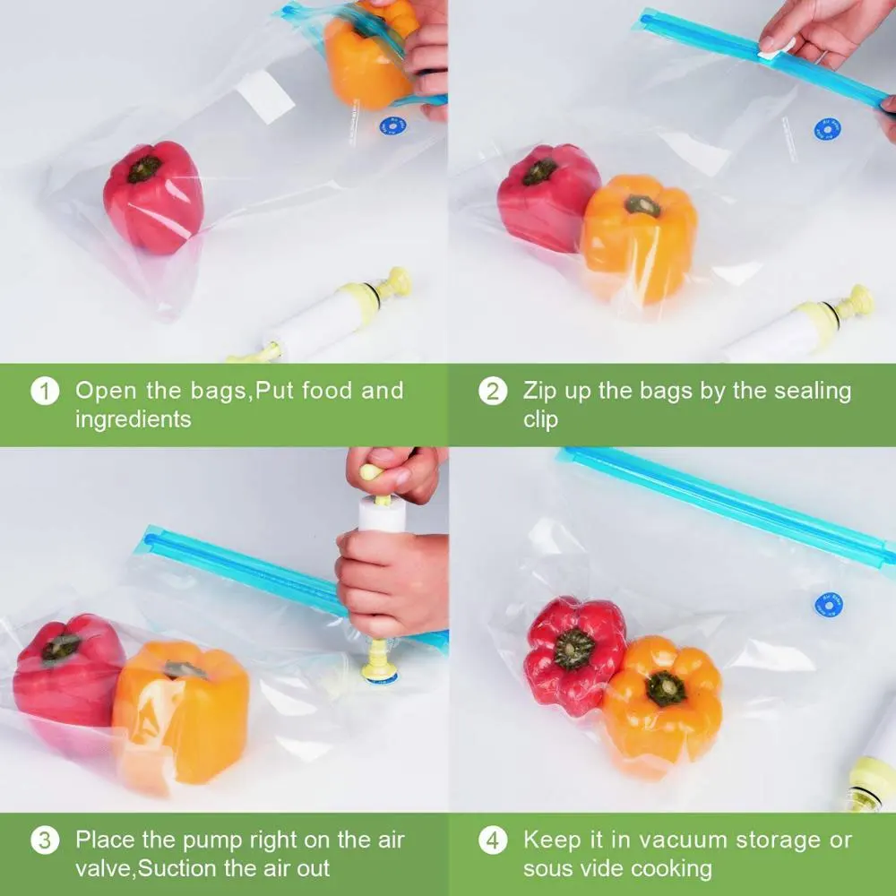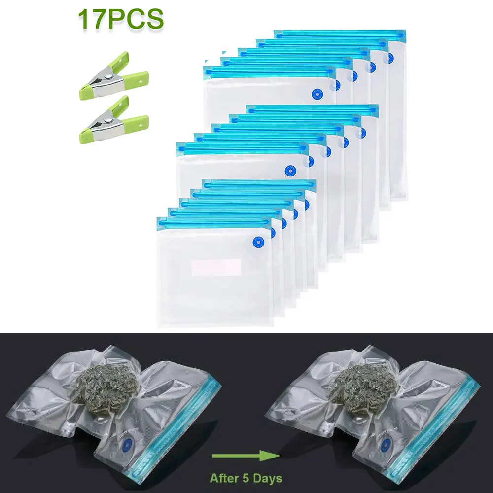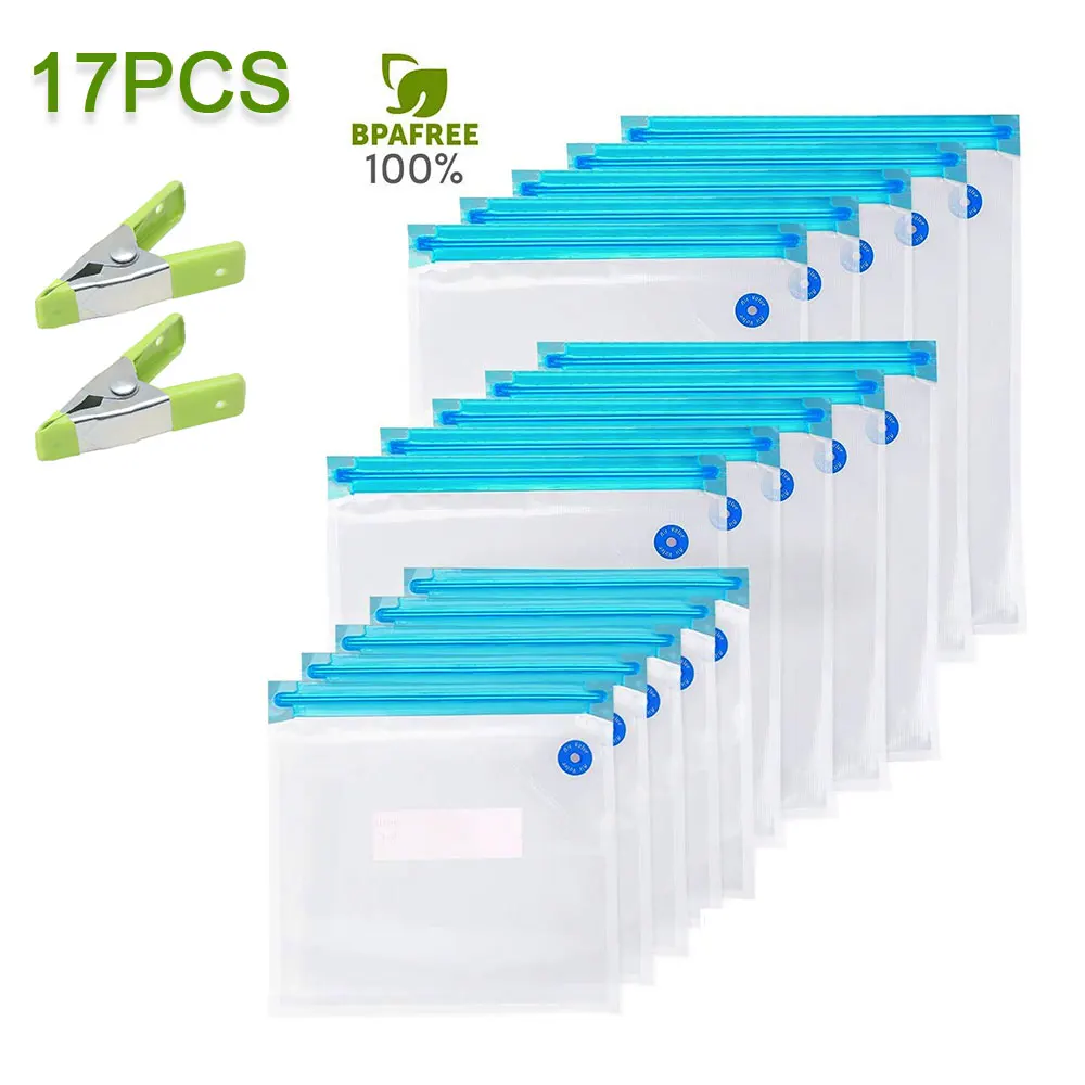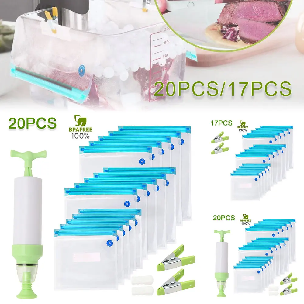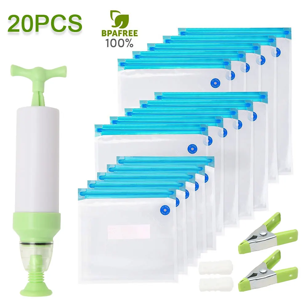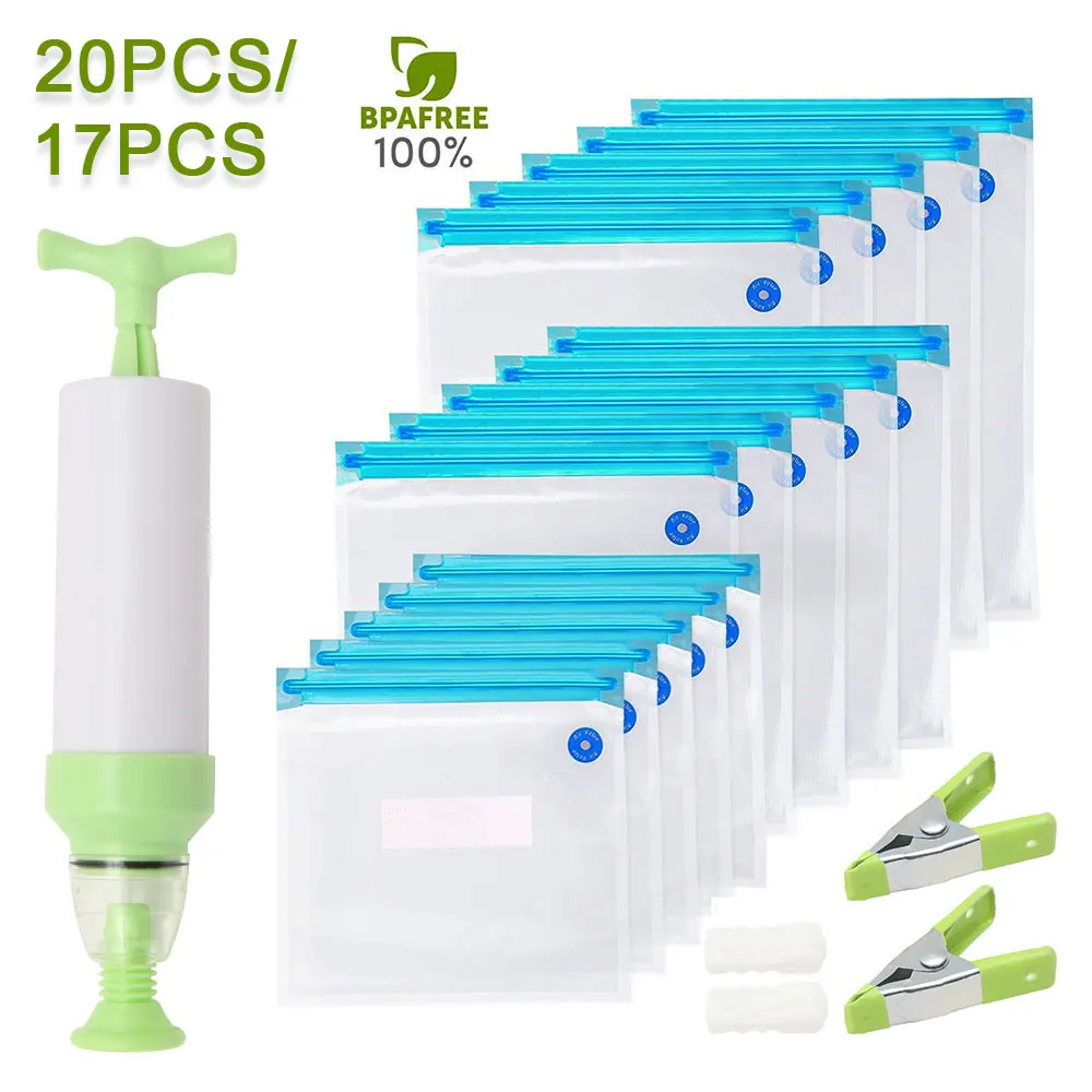 20/17 шт. сумка Наборы многоразовые Еда вакуумно-сжатые пакеты для хранения-загерметизируйте мешки с ручным насосом для непрерысной герметизации зажимы Еда Обёрточная бумага для Еда хранения замораживания