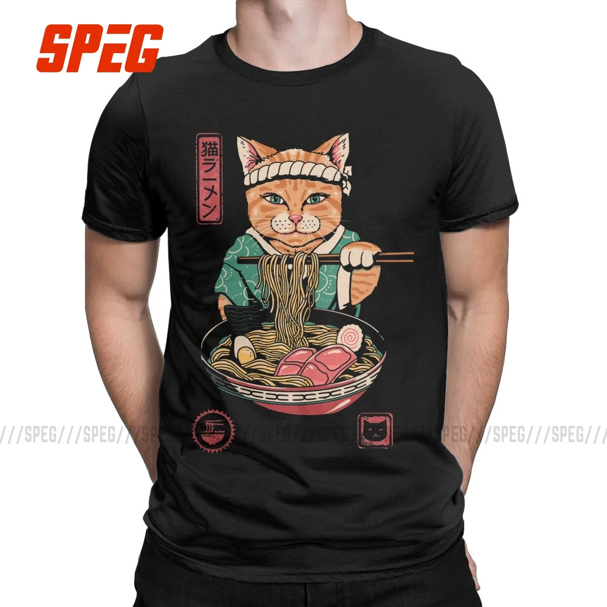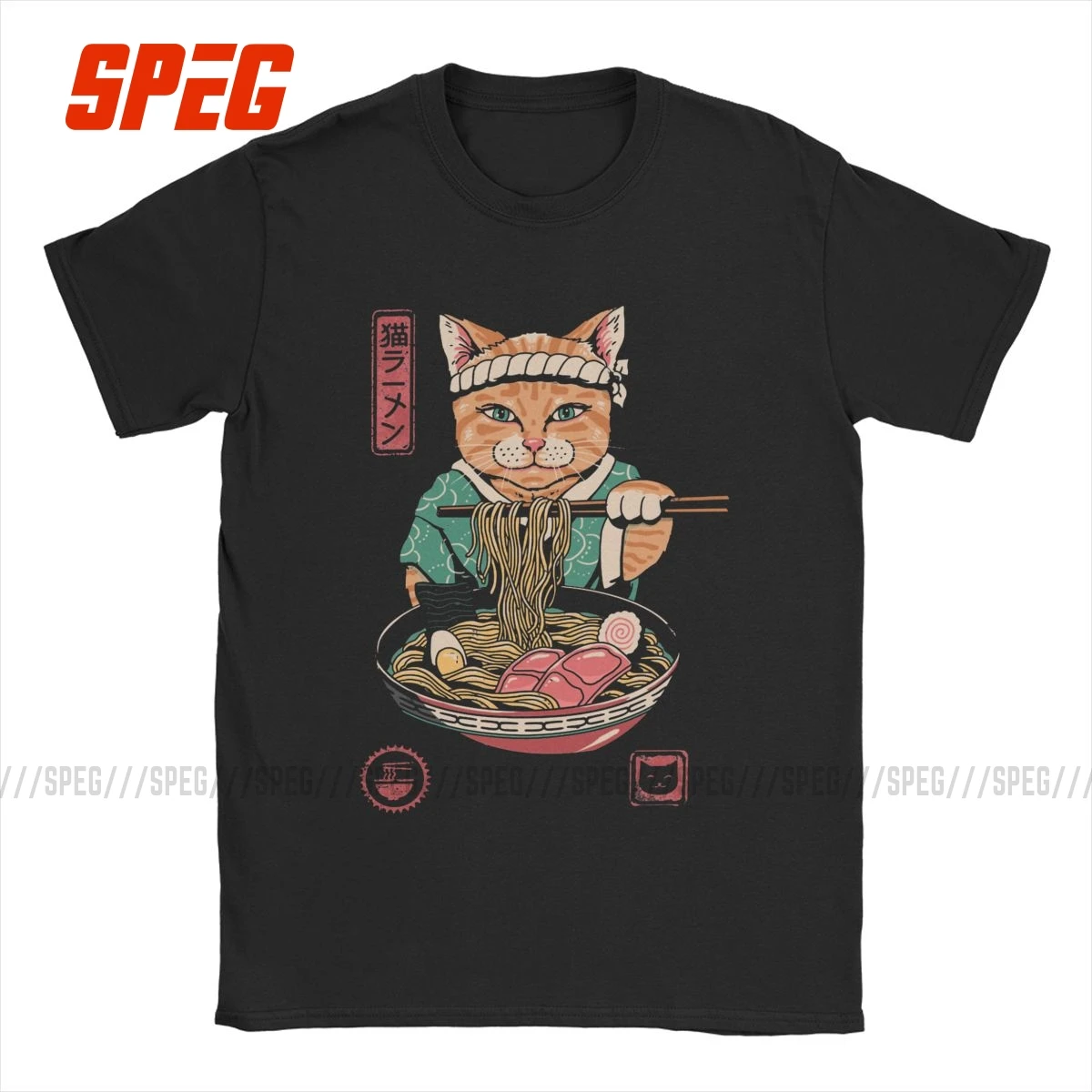 Мужская футболка, забавная винтажная хлопковая Футболка в стиле Neko с рамен, Самураем, кошкой, женская одежда с круглым вырезом, большие размеры 4XL 5XL Plus
