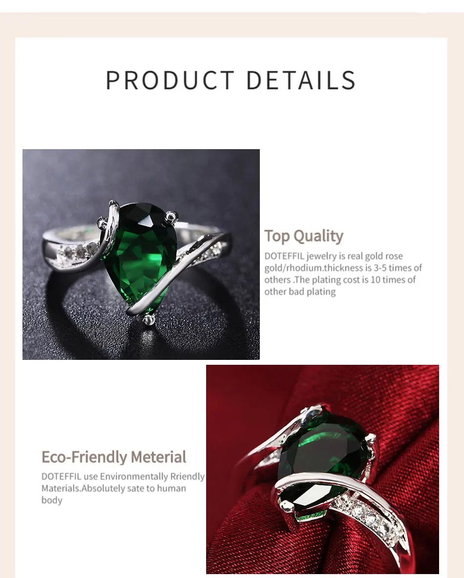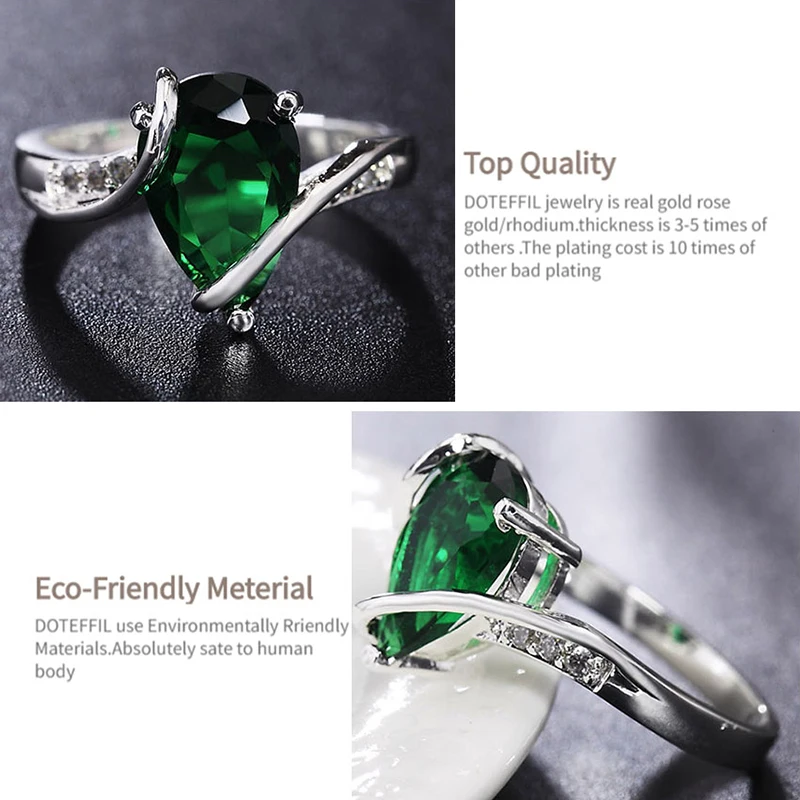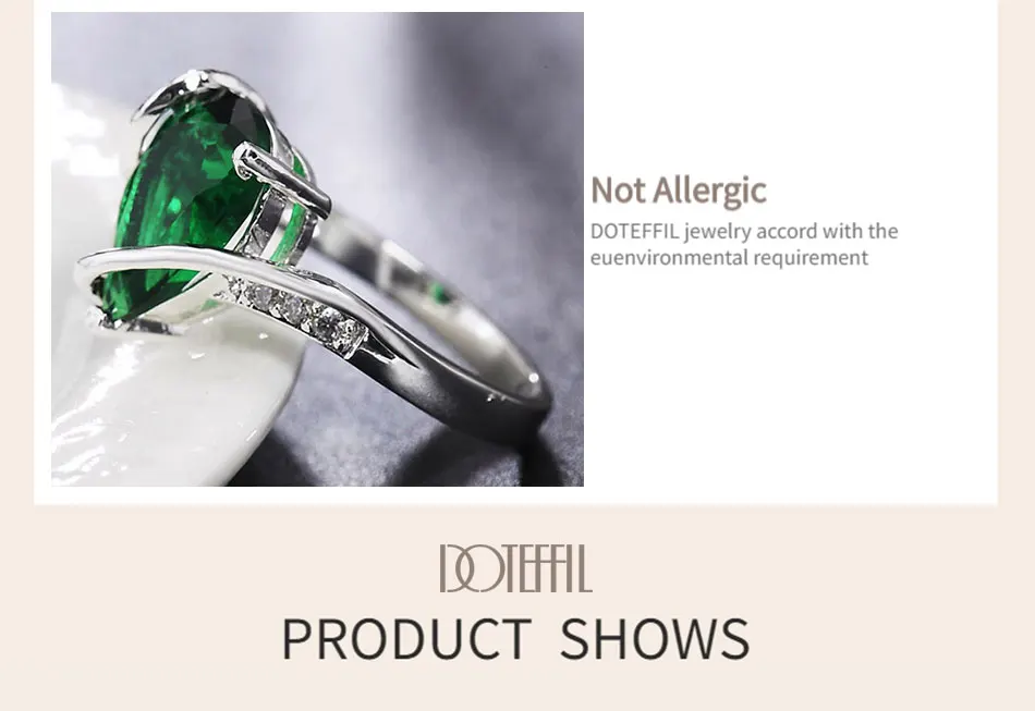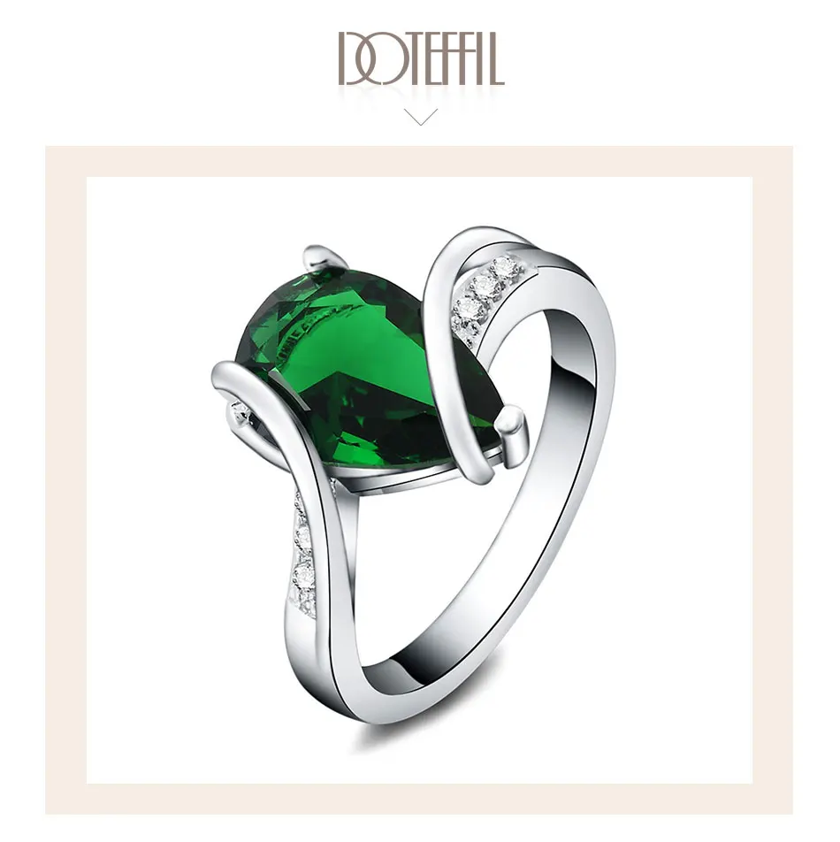 Женское кольцо с зеленым кристаллом DOTEFFIL, очаровательное Ювелирное Украшение из стерлингового серебра 925 пробы с цирконием ААА, для свадьбы, помолвки и вечеринки