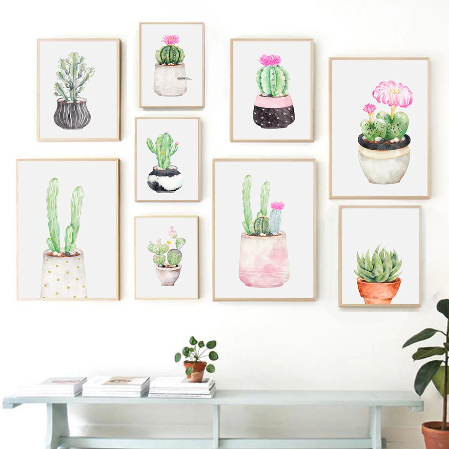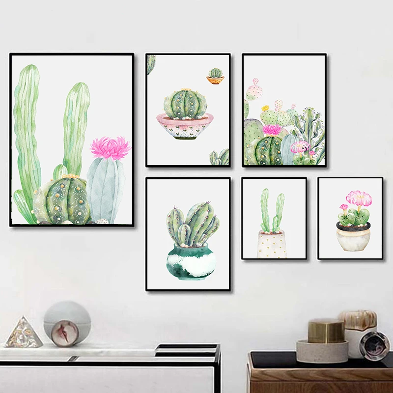 Художественный принт в скандинавском стиле, пастельный кактус, цветок, холст, постер, ботанический настенный художественный Рисунок для гостиной, украшение для дома