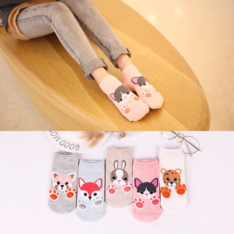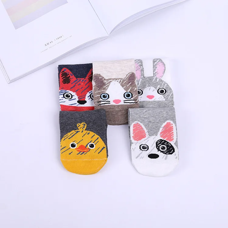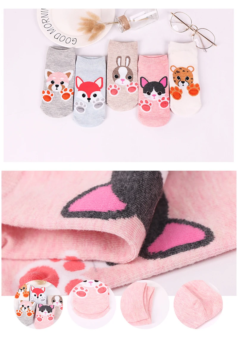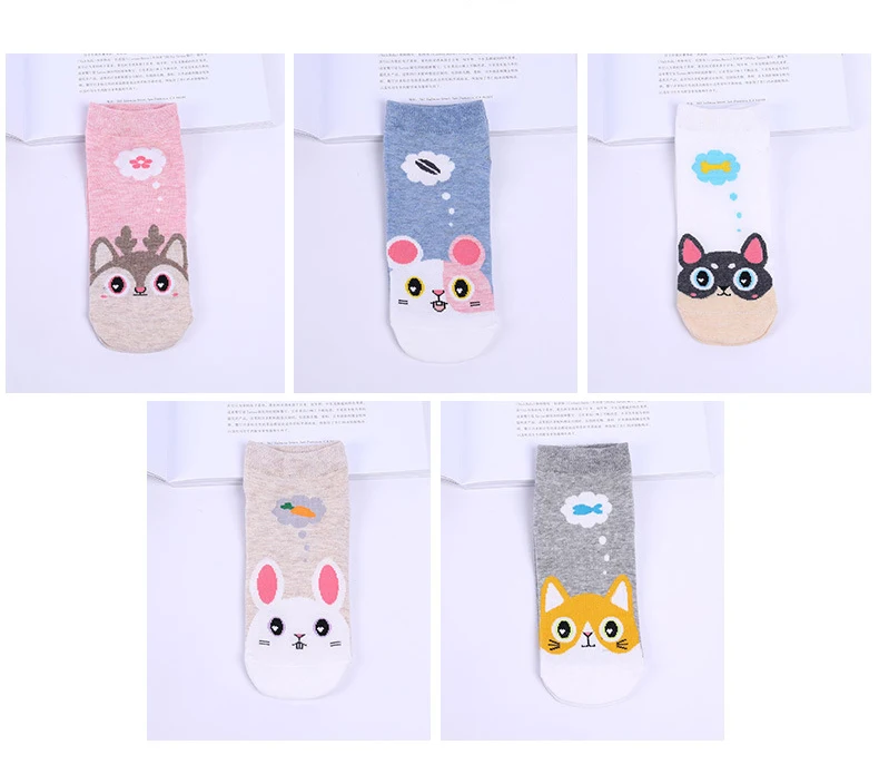 5 пар, женские хлопковые носки, короткие носки, милые забавные носк...