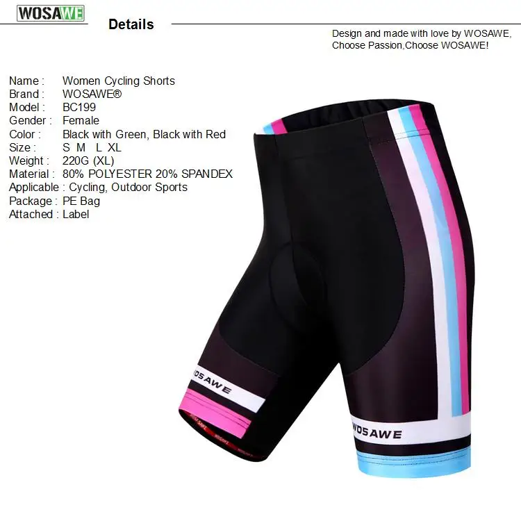 WOSAWE летние велосипедные короткие женские велосипедные колготки с гелевыми вставками одежда быстросохнущие дышащие велосипедные шорты для спорта на открытом воздухе