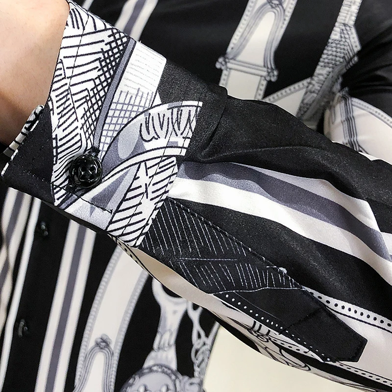 Рубашка мужская с длинным рукавом и принтом, осень 2019