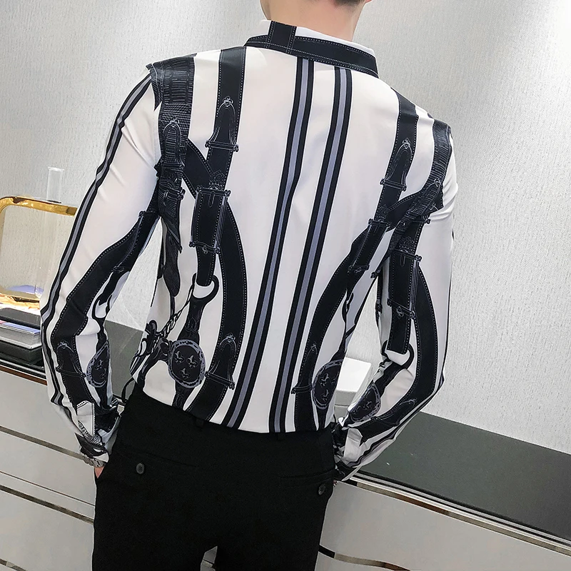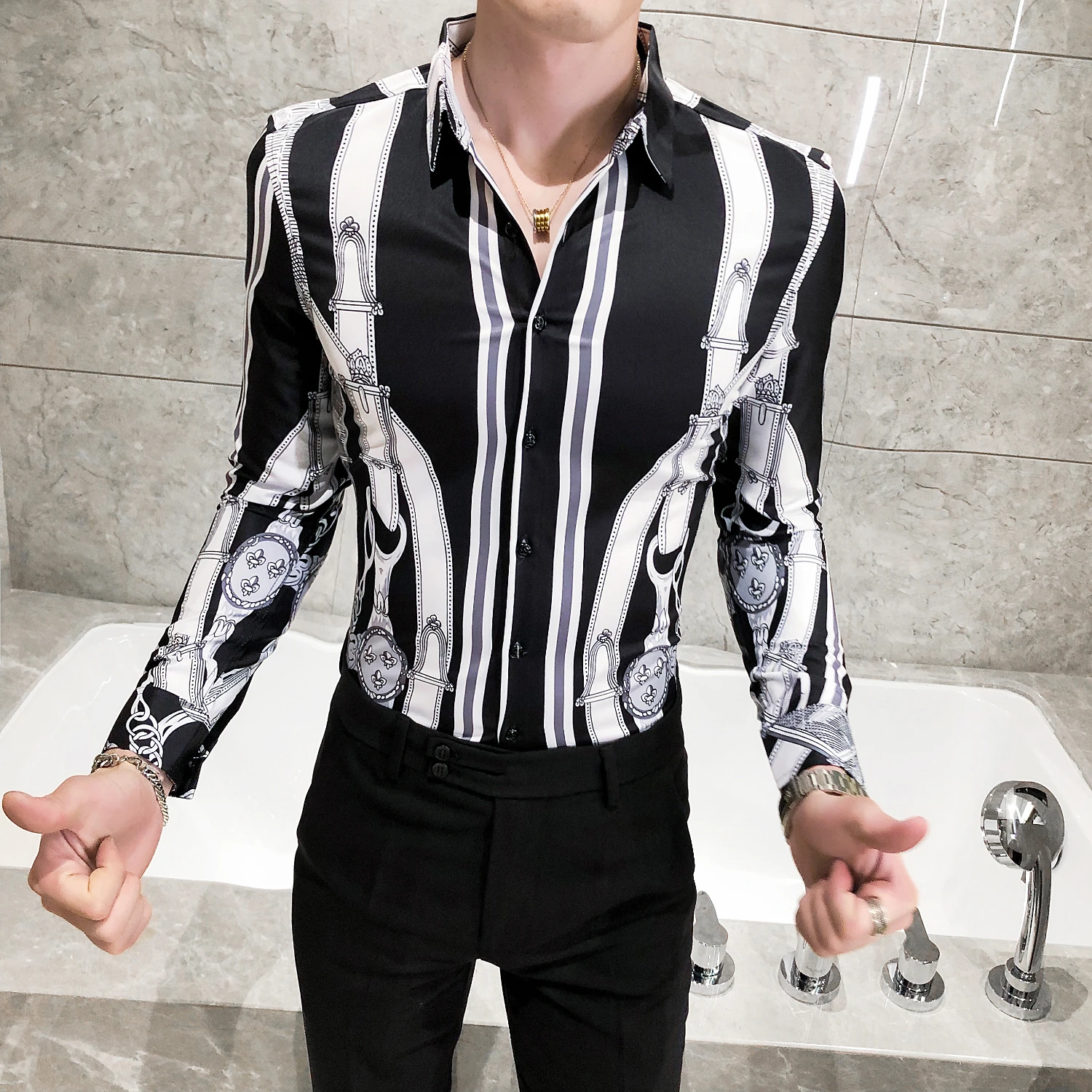 Корейская приталенная рубашка с цветочным принтом, индивидуальная полосатая рубашка с принтом, Мужская модная Осенняя Повседневная рубашка с длинным рукавом для ночного клуба
