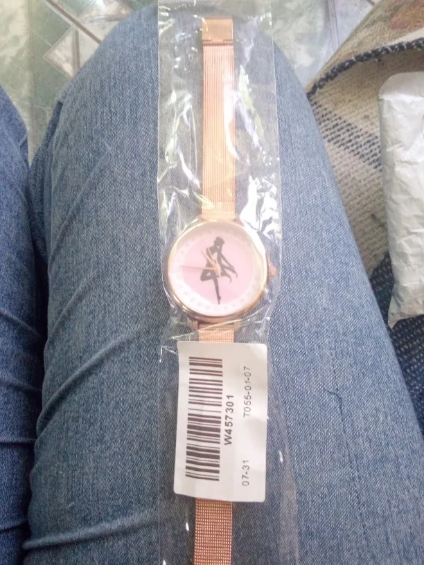 Очень мило, как на фото, металлический ремешок немного жесткий, не такой гибкий, но это нормально