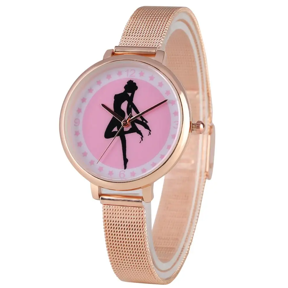 Сталькожа кварцевые наручные часы Лидер продаж; Обувь с рисунками из японского аниме элемент Дизайн Женские часы-браслет для студенток подарки 2019