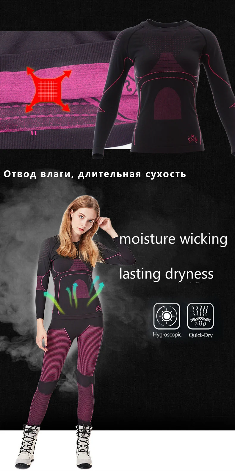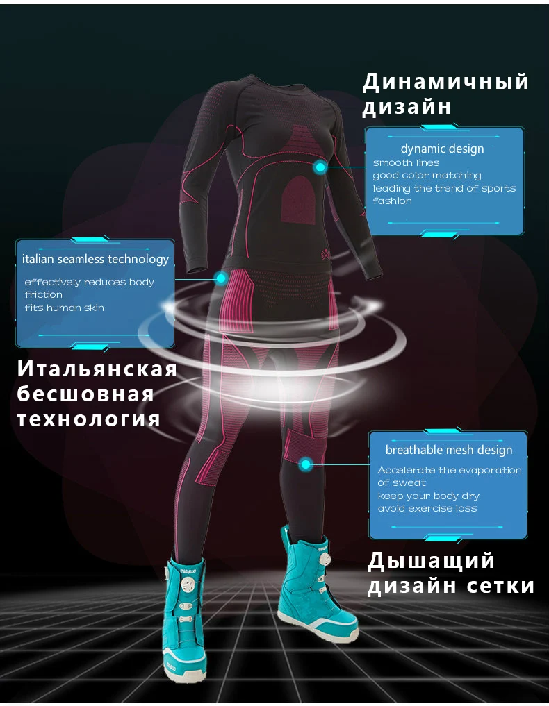 Лыжное нижнее белье, костюм для мужчин и женщин, дышащий, впитывающий влагу, для сноуборда, катания на лыжах, нижнее белье, футболка, штаны, зимний спортивный лыжный термальный комплект
