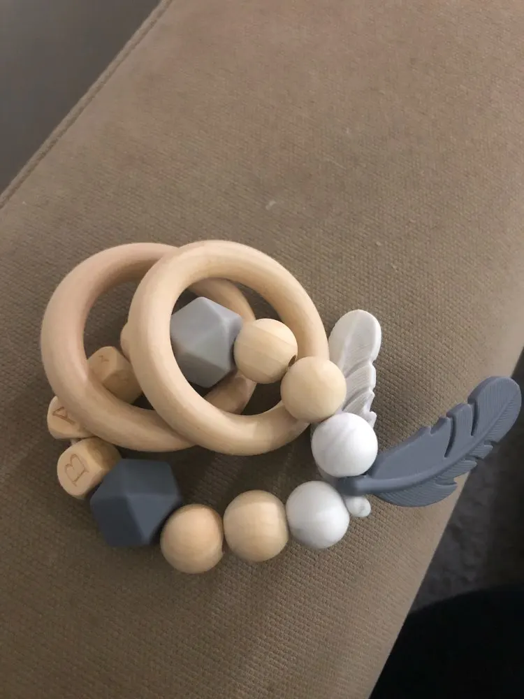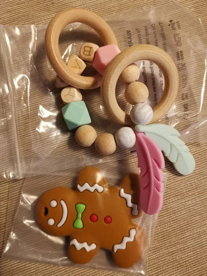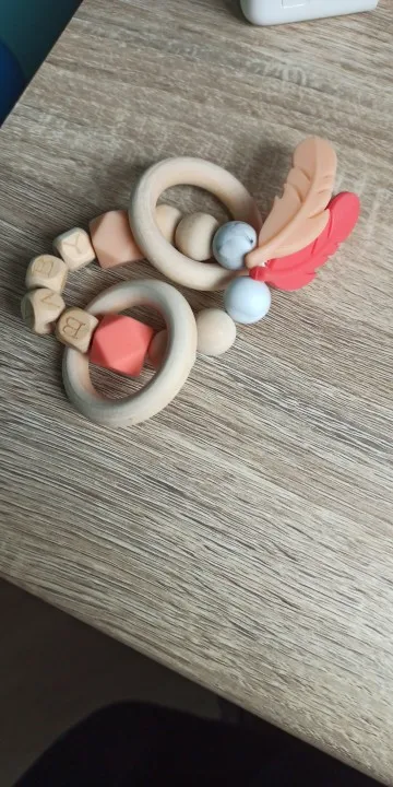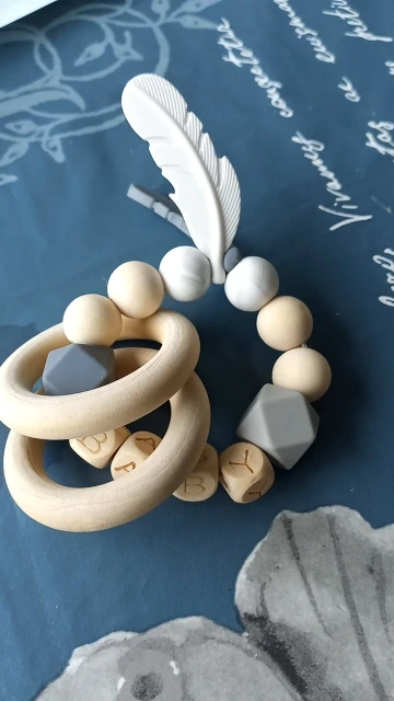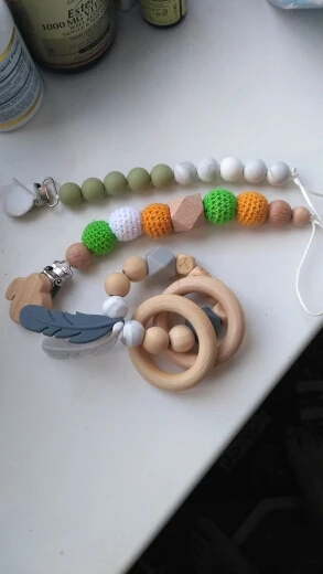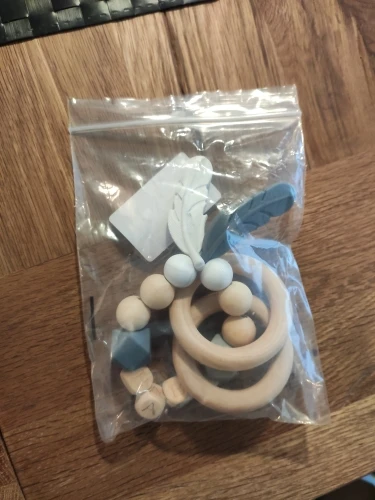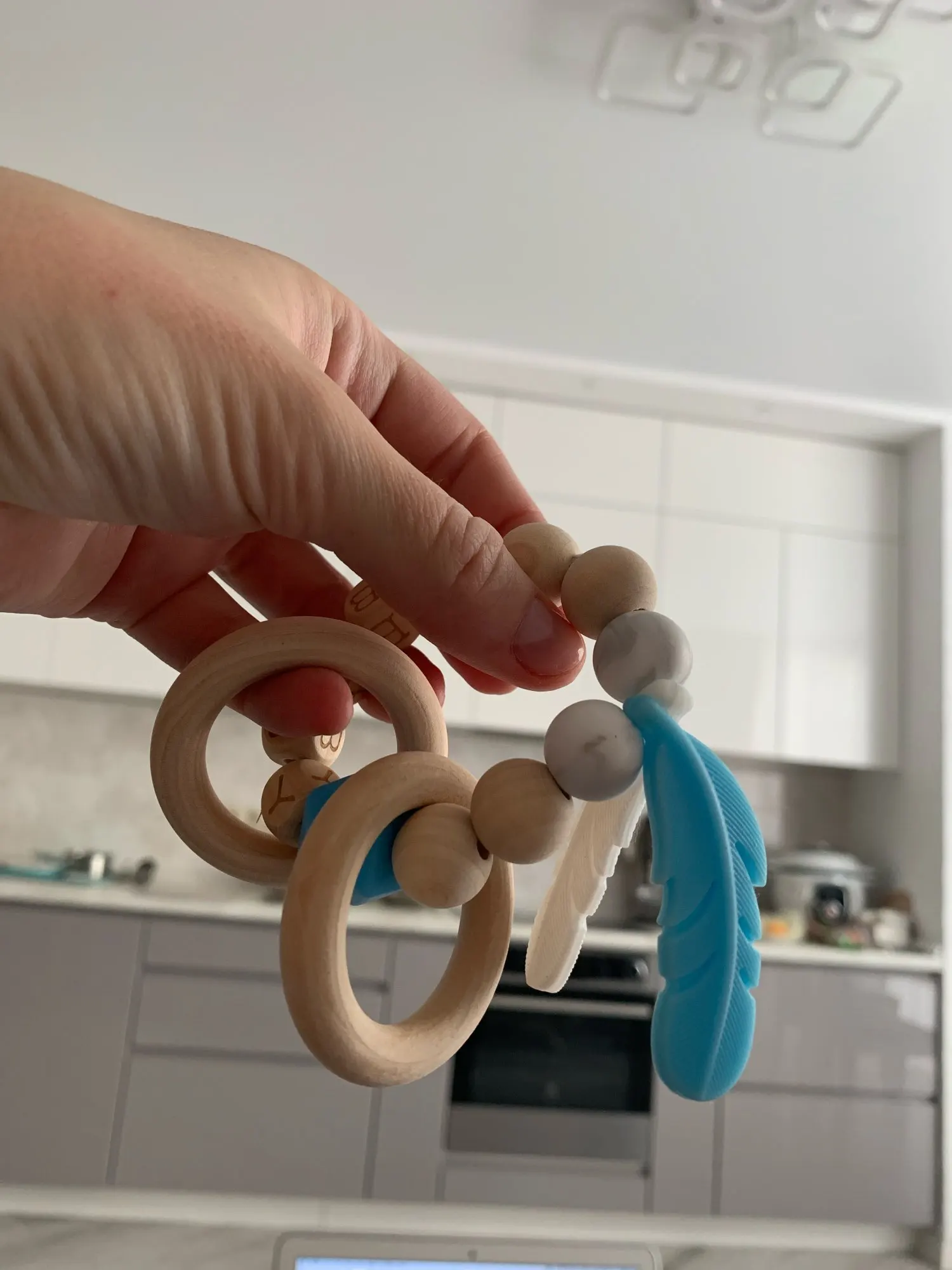 симпатичный прорезыватель,но я думала,что бусины на резинке,а тут шнур и довольно туго стянут