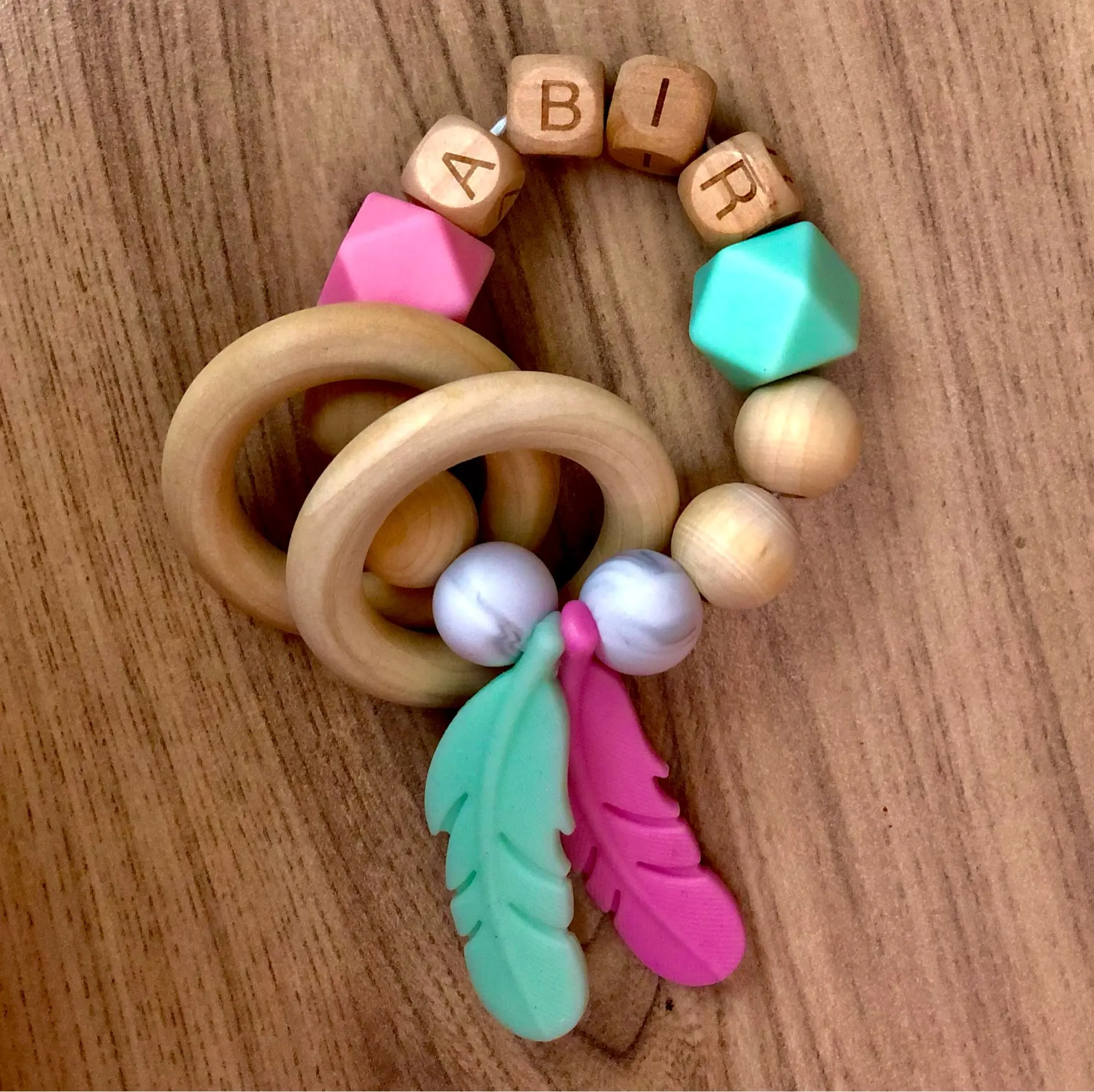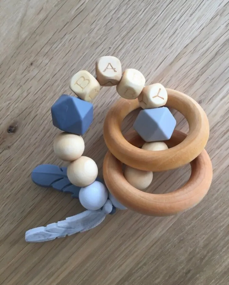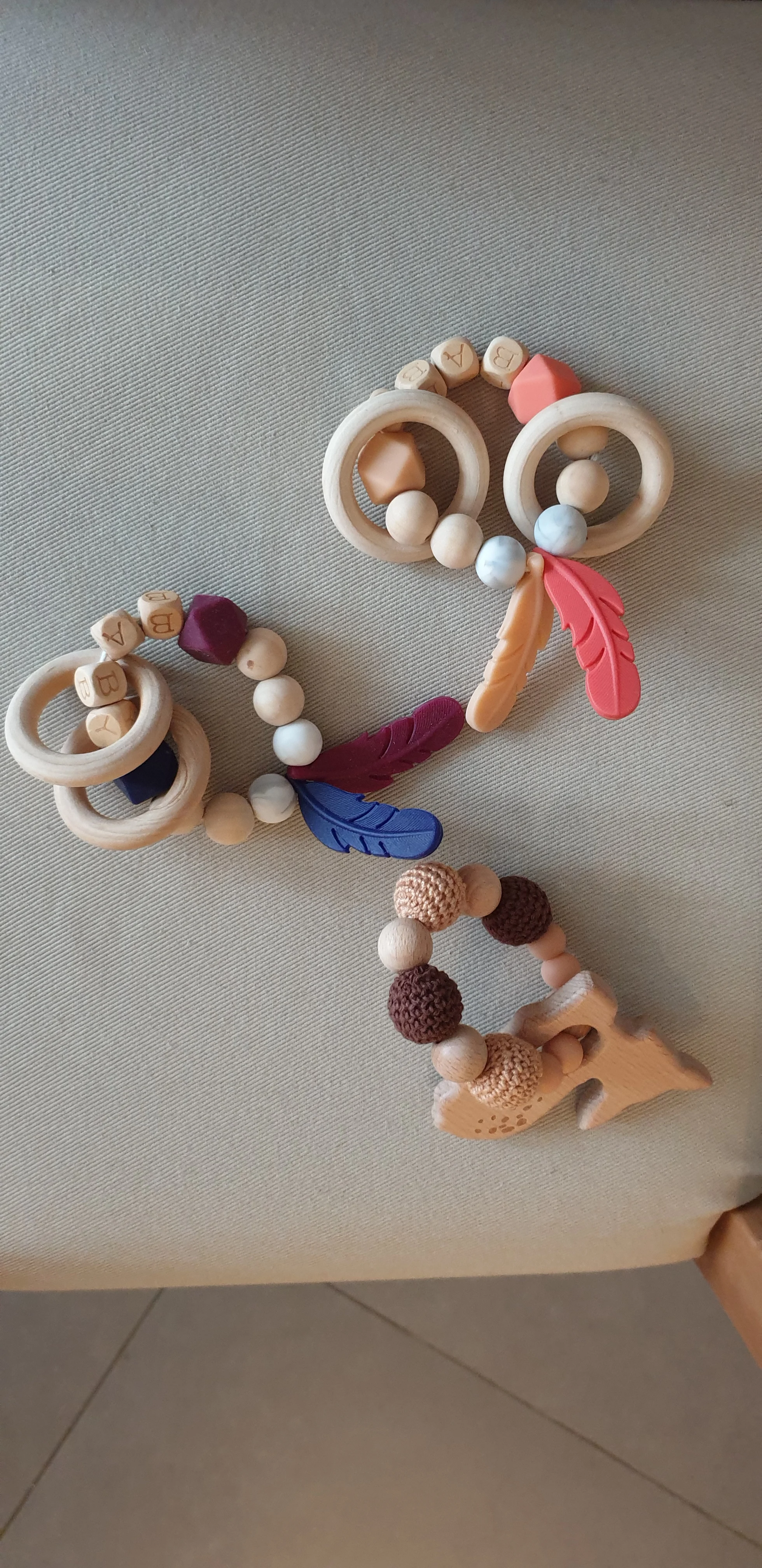 симпатичный прорезыватель,но я думала,что бусины на резинке,а тут шнур и довольно туго стянут