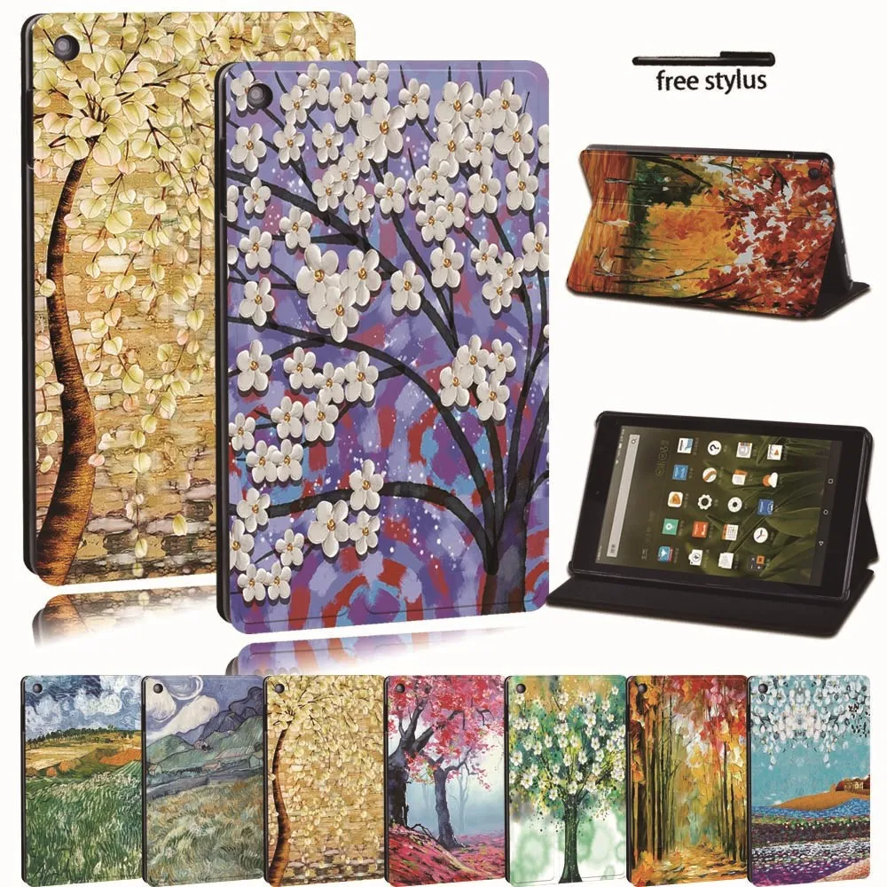 Для Amazon Fire 7 579th GenKindle Fire HD 8 10 с alexa Печатный чехол из искусственной кожи (полиуретан) с рисунком планшетный Стенд Folio чехол