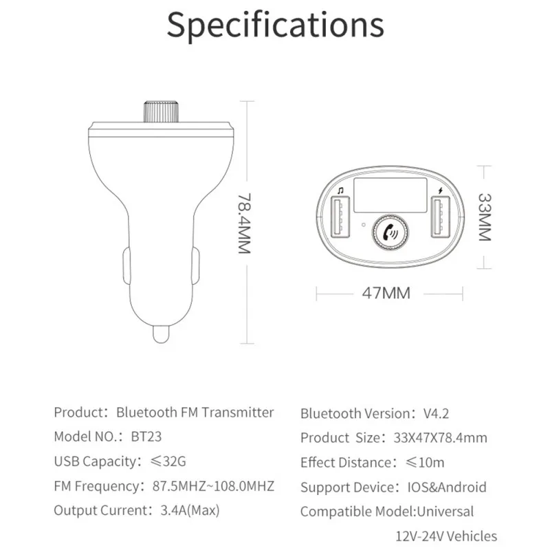 Автомобильный MP3-плеер BT23 с Bluetooth, автомобильный прикуриватель, Fm-карта, цифровой дисплей, Usb, автомобильное зарядное устройство, автомобильные принадлежности