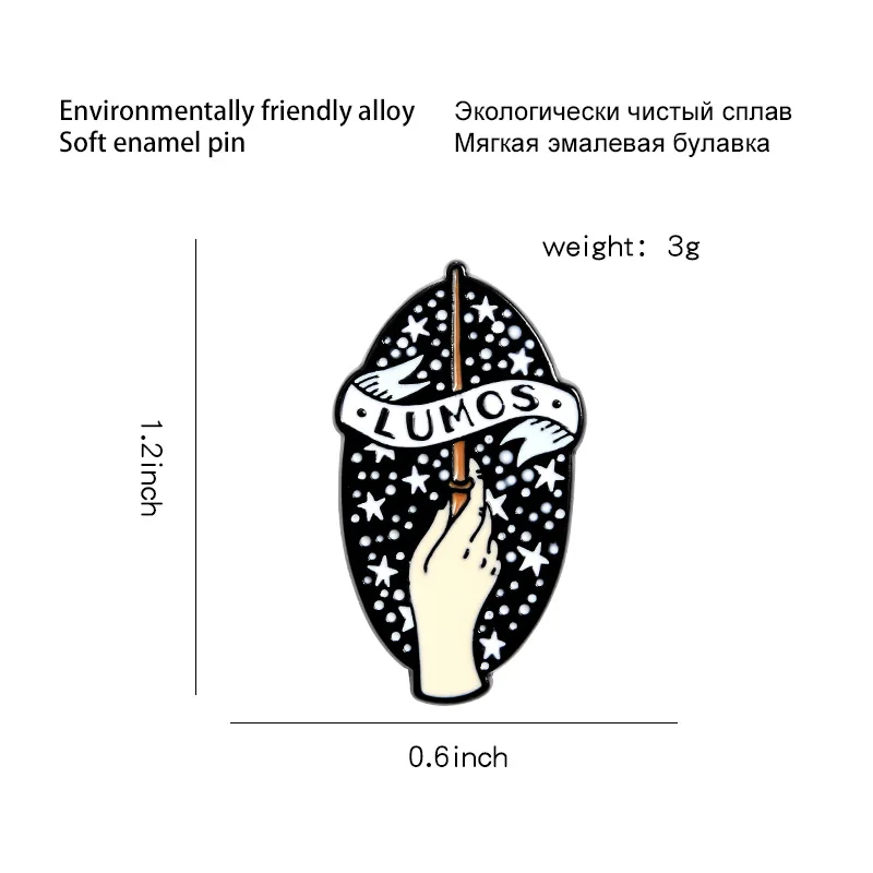 Волшебные заклинания LUMOS эмалевые Броши Булавки черные Волшебные ...