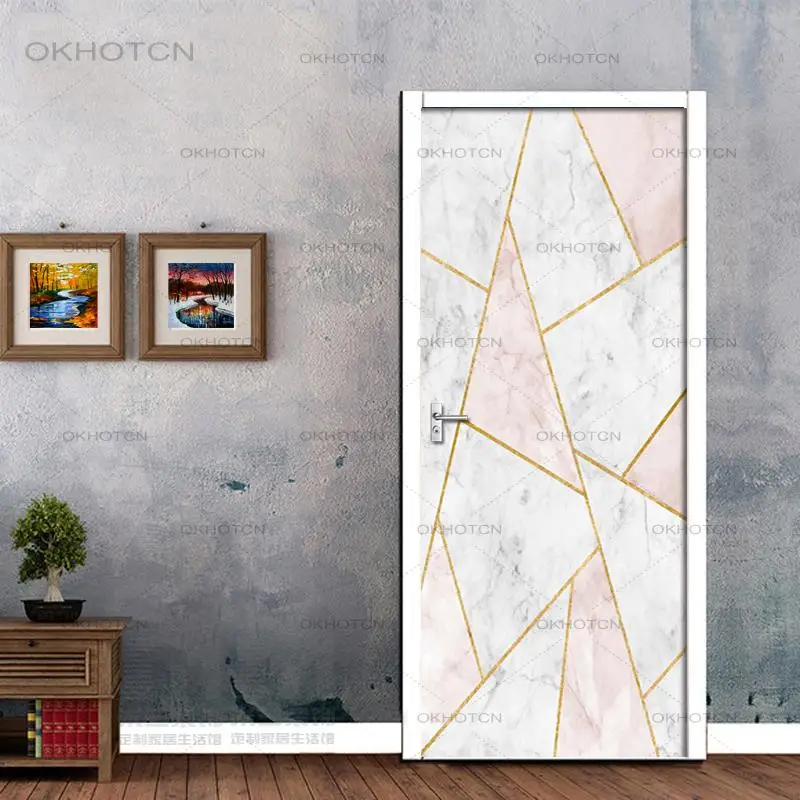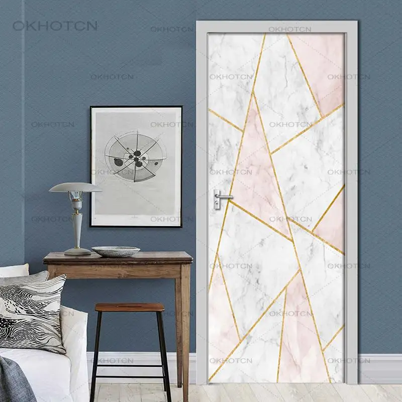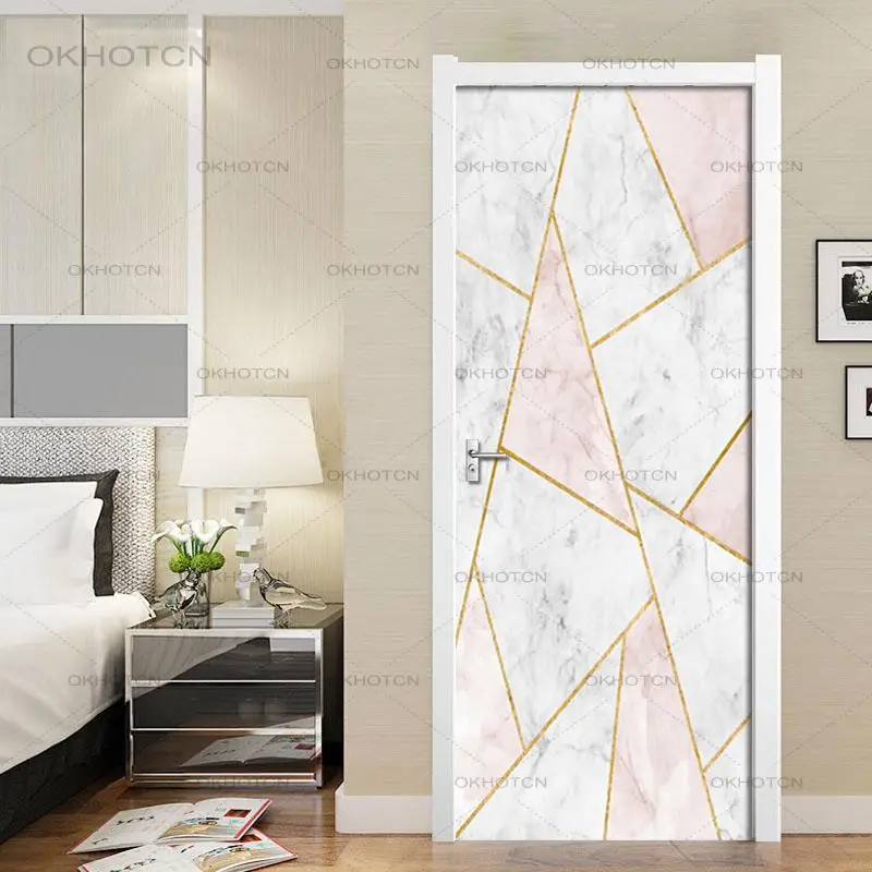 Наклейка с розовыми мраморными линиями, s-образные двери, Настенная Наклейка сделай сам, Настенная Наклейка для спальни, домашнего декора, плакат, водостойкая дверная наклейка, имитация 3D наклейки
