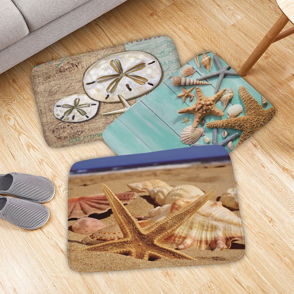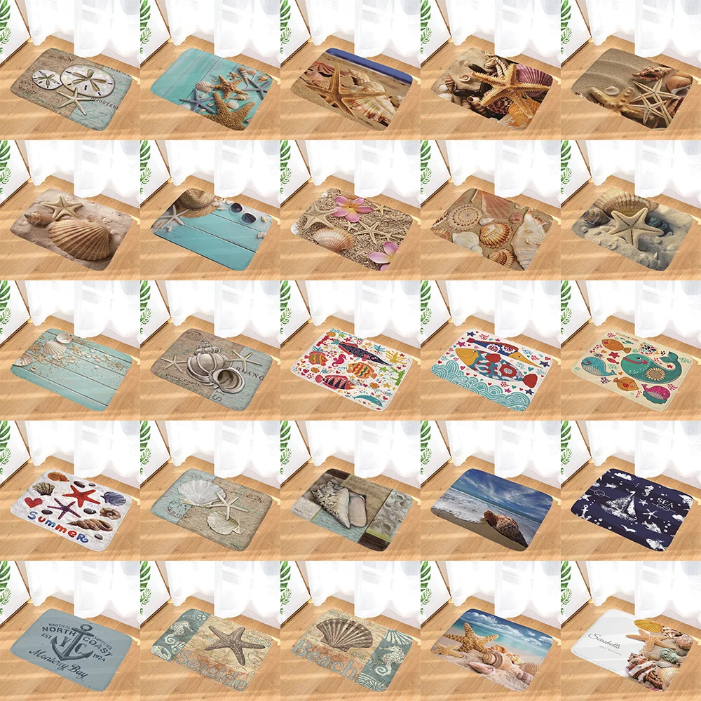 40*60 см, Пляжная раковина, морская звезда, коврик для ванной комнаты, нескользящий ковер с рисунком, моющийся коврик для двери, передний пол, ковер, домашний декор, теппич