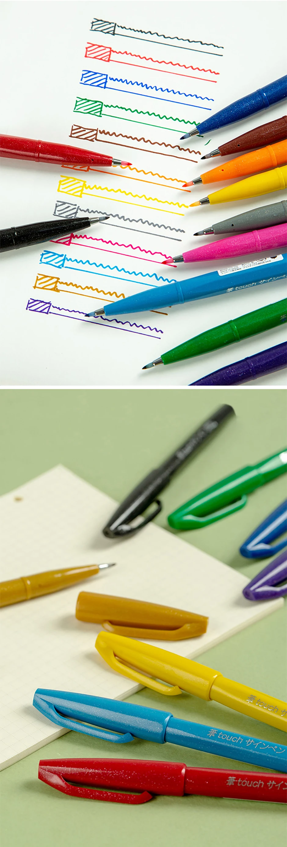 Pentel мягкая ручка сенсорная SES15C Новая цветная волоконная головка ручка щетка ручная учётная запись поздравительная карта цветок художественное слово быстросохнущие пигментные чернила