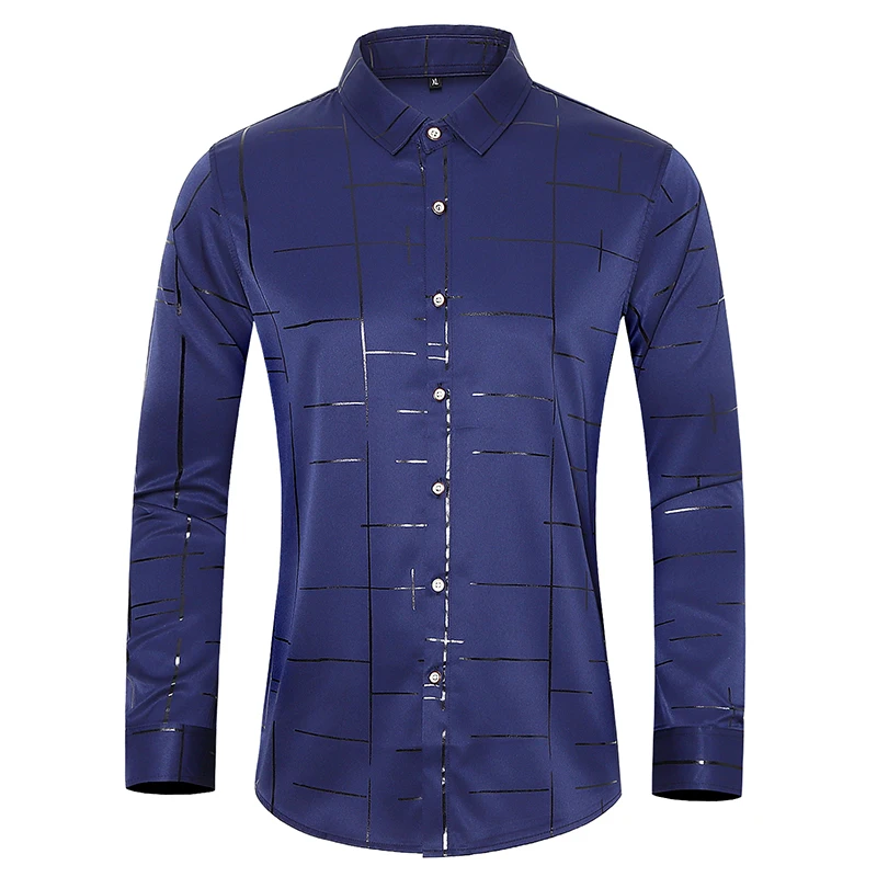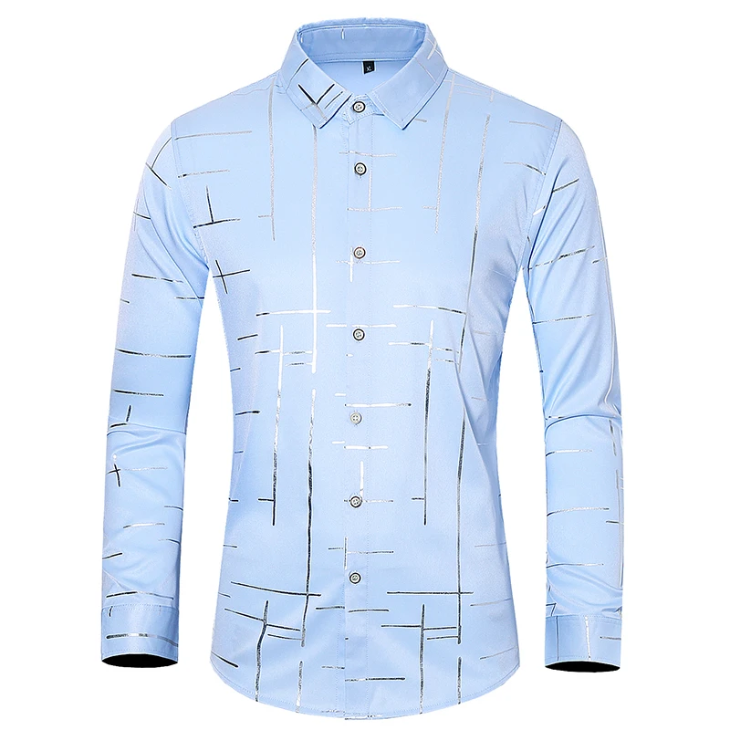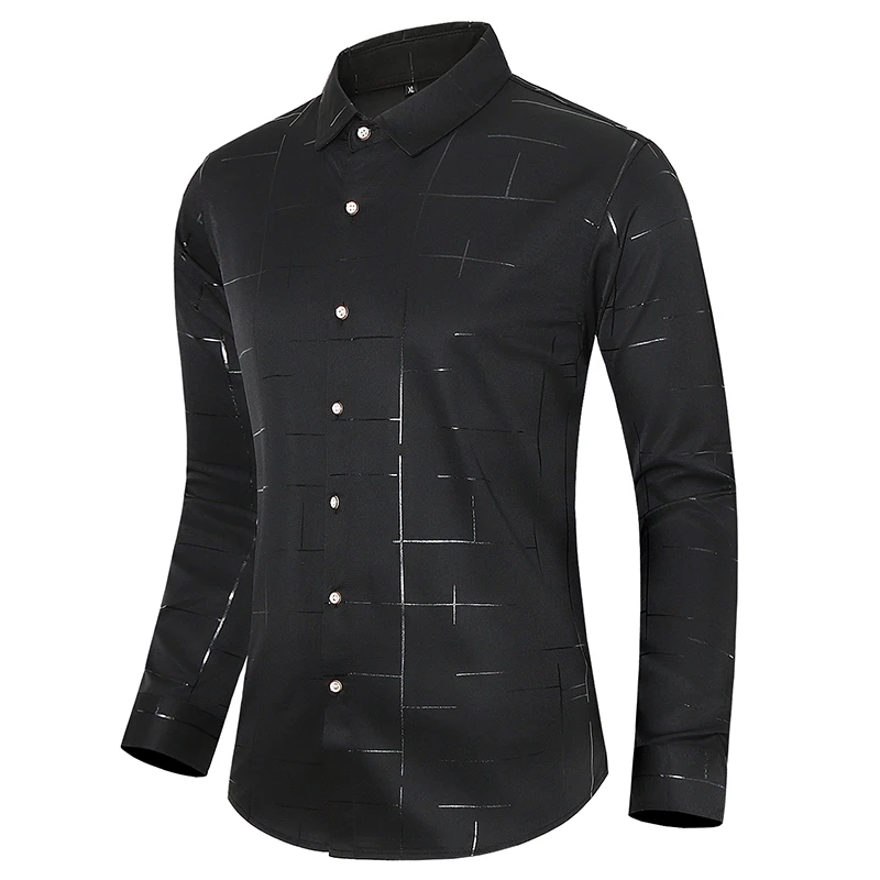 Мужская рубашка с длинными рукавами, приталенная однобортная рубашка с позолоченным принтом и отворотом, рубашки для смокинга, 2020, размера плюс, осень M-7XL
