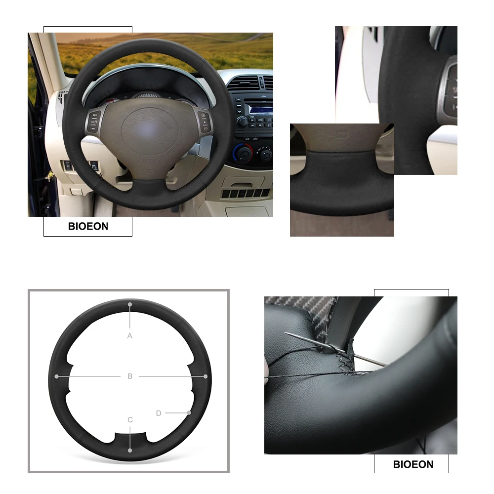Ручной стежок черный PU искусственная кожа Чехол рулевого колеса автомобиля для Chery Tiggo 2007 2008 2009
