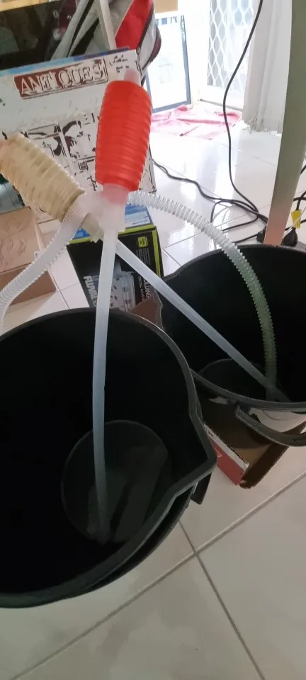 Работает, требуется две батарейки типа D, сборка несложная. Слегка протекает в месте забора воды, не критично. Шланг короткий, как и само устройство, до дна 19 л. бутылки не достаёт. Брал для долива воды в аквариум.