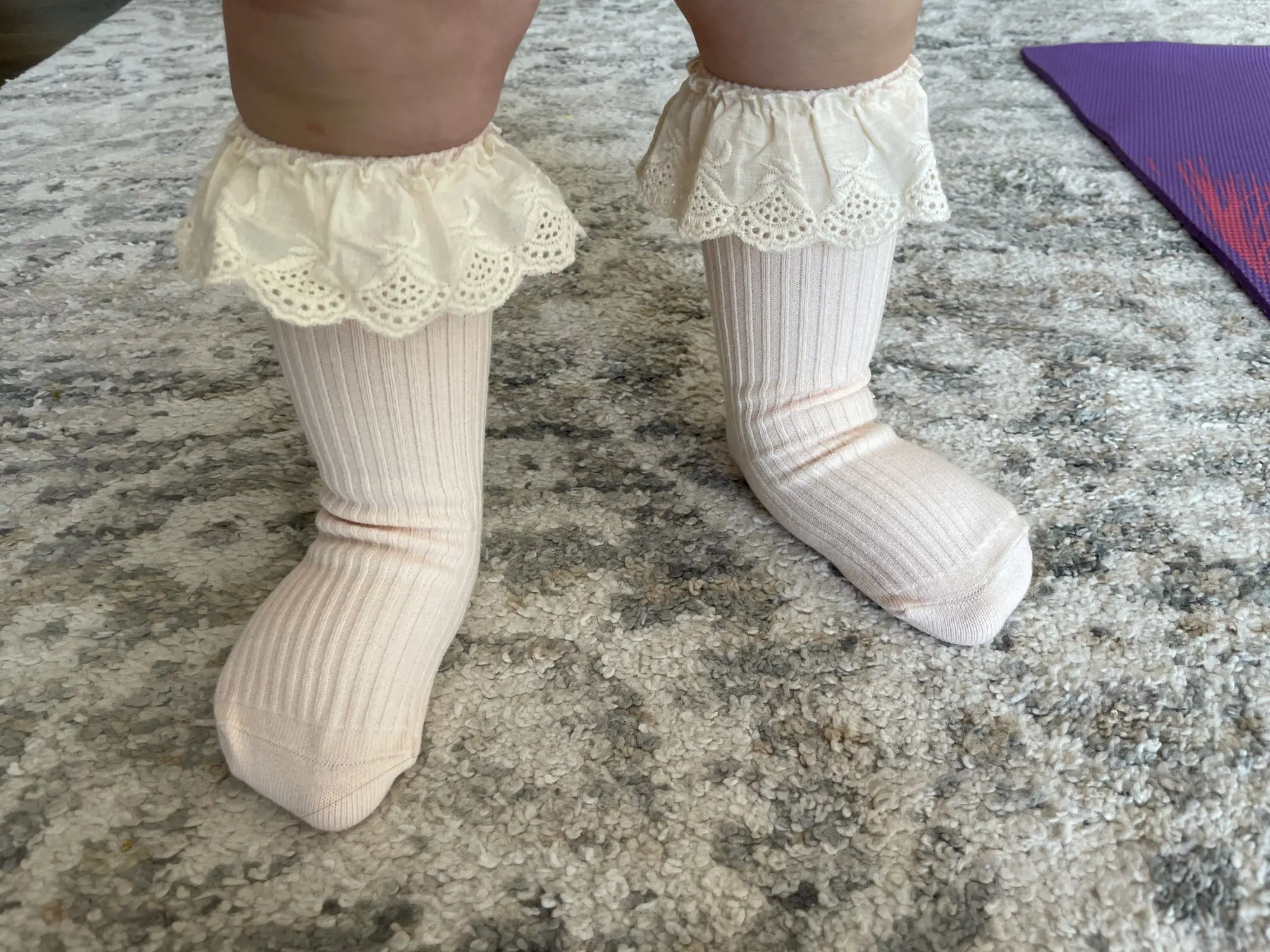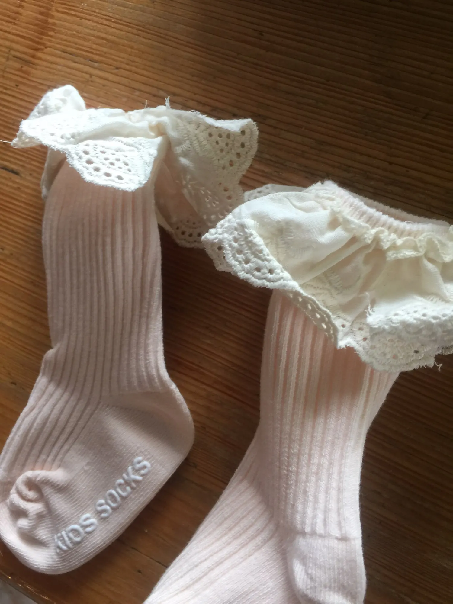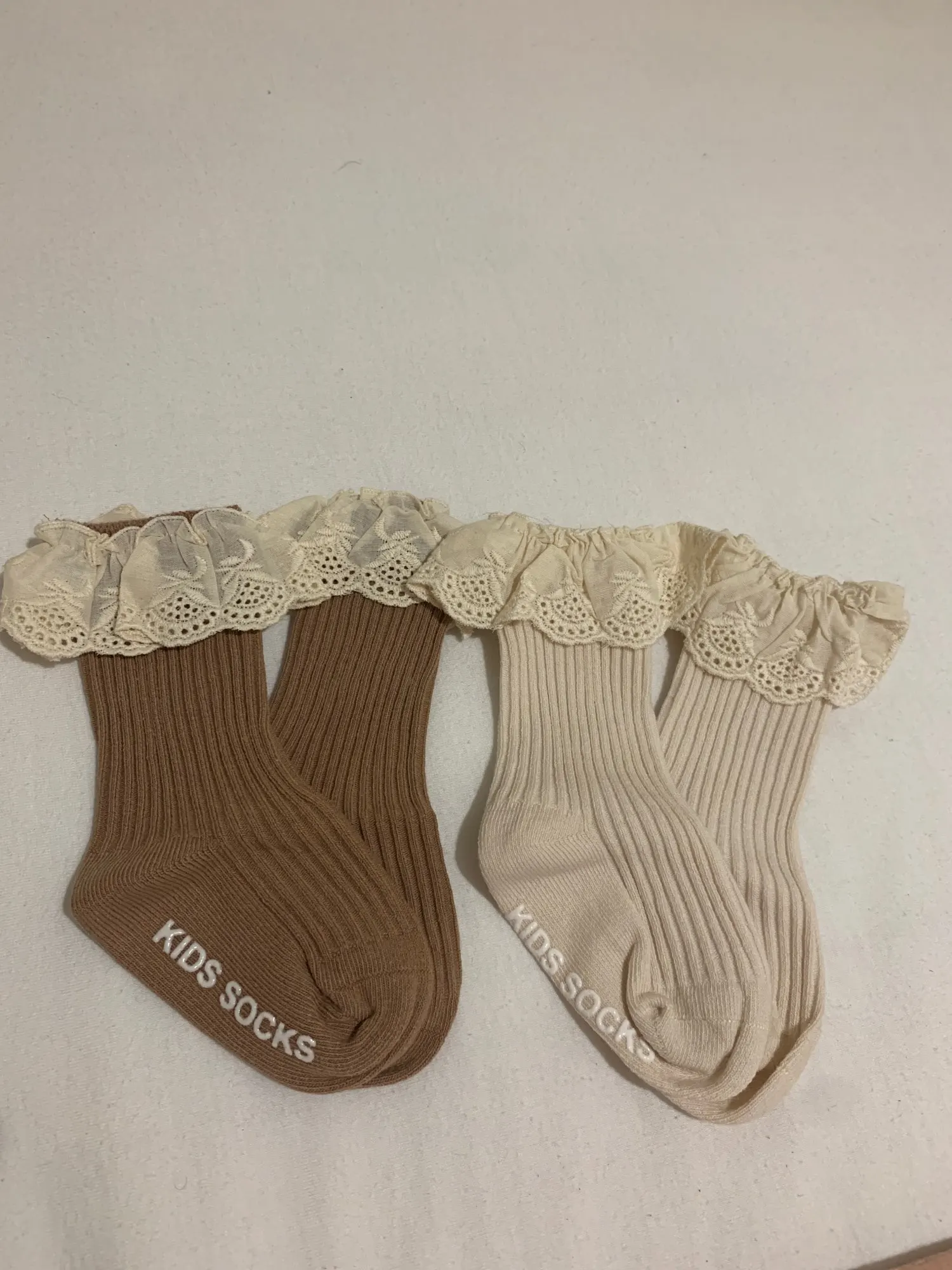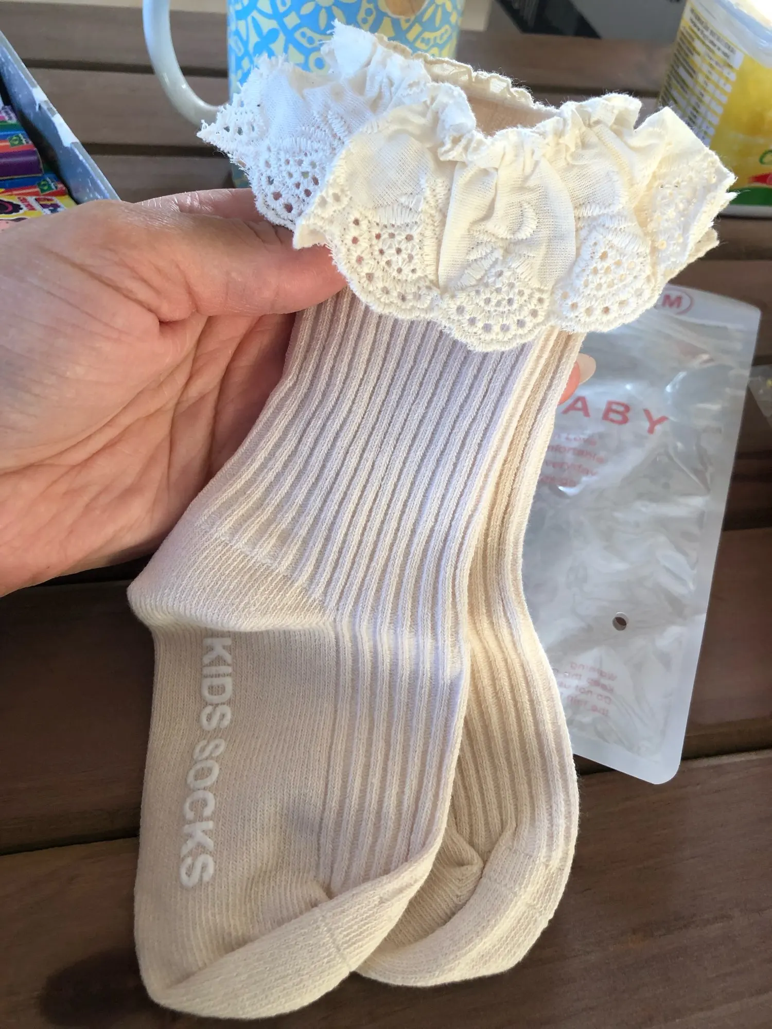 Носки детские, хлопковые, кружевные, до колена, для девочек 0-3 лет, носки для маленьких девочек
