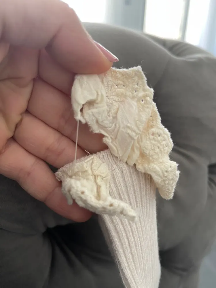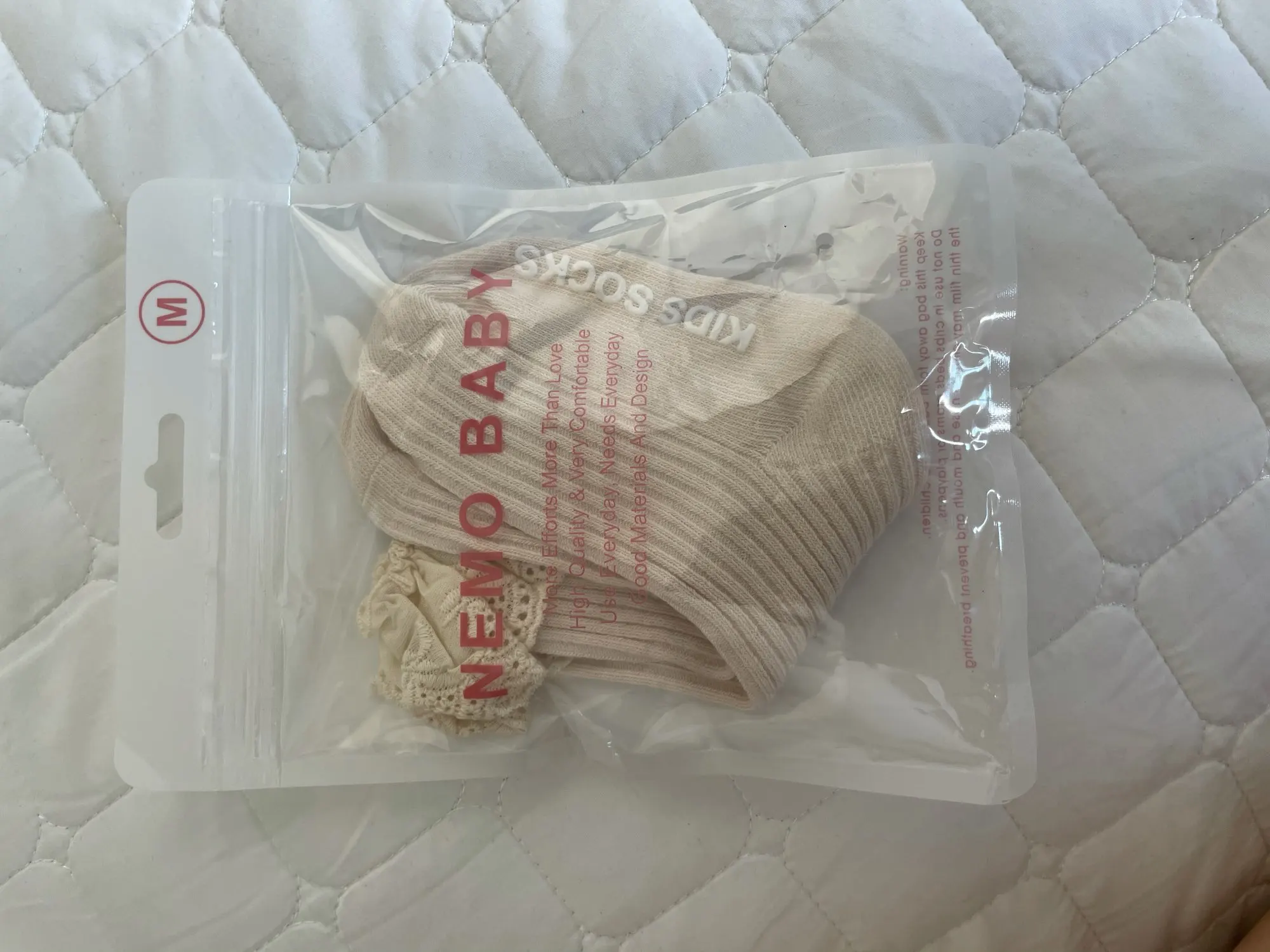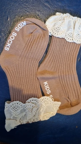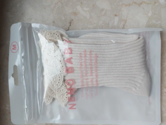 Очень быстрая доставка до пункта выдачи. До Спб около двух недель. Носочки соответствуют описанию продавца, Очень мягкие и приятные. Цвет симпатичный,кружево хлопок .Надпись прорезинена. носочки упакованы в пакетик.