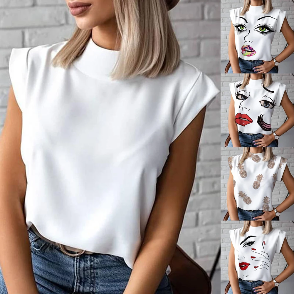Женская Элегантная блузка с принтом в виде губ, Летняя Повседневная Блузка с воротником-стойкой, пуловеры, топы для девушек, модные милые Блузы с коротким рукавом, 2020