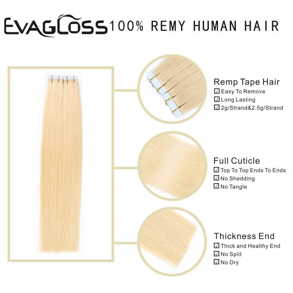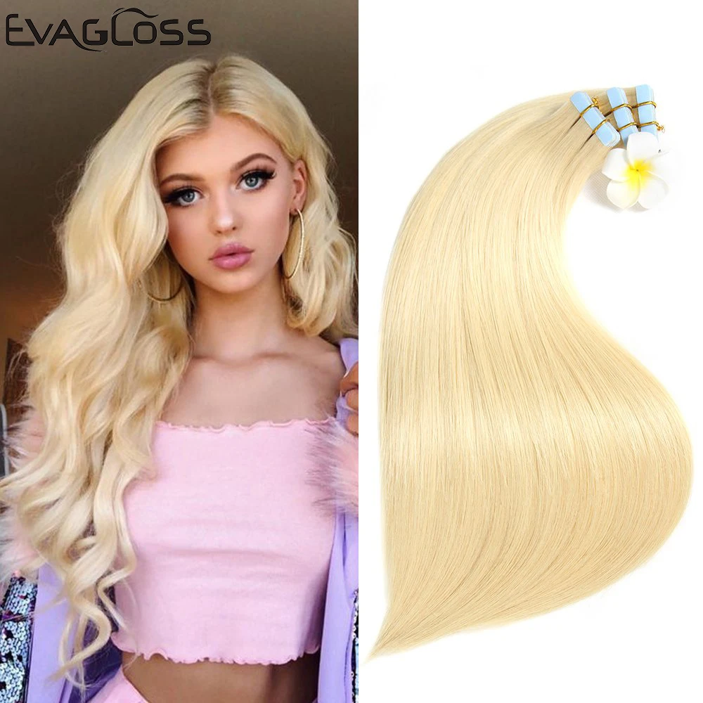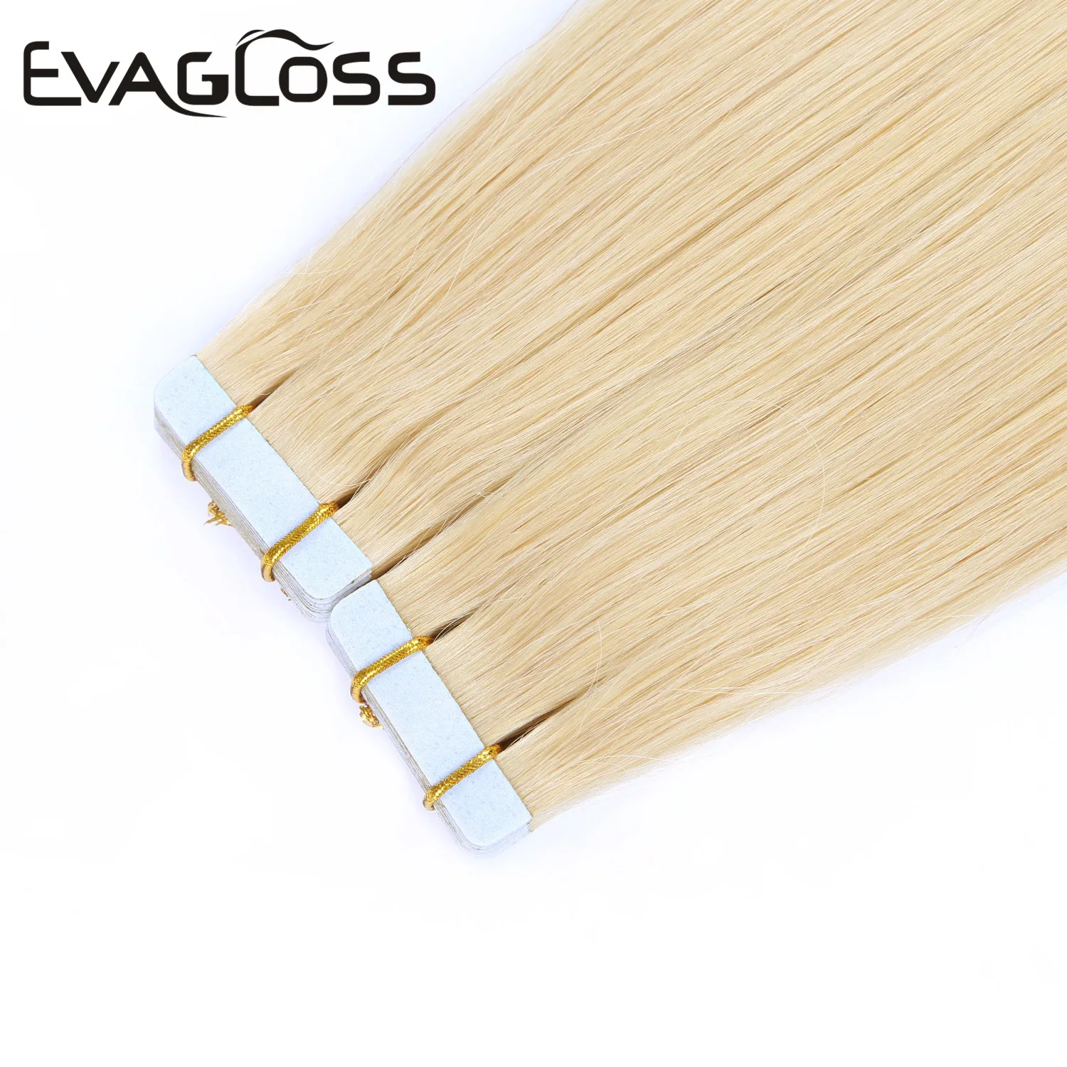 Лента EVAGLOSS в человеческих волосах для наращивания, прямой уток кожи, европейская машинка для наращивания без повреждений, бесплатная доставка