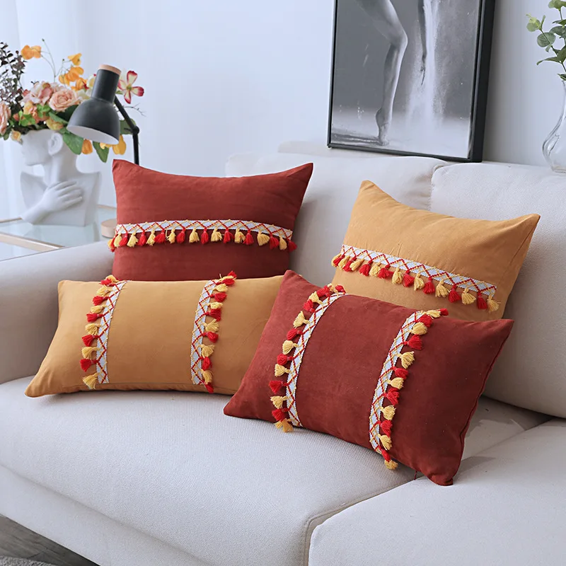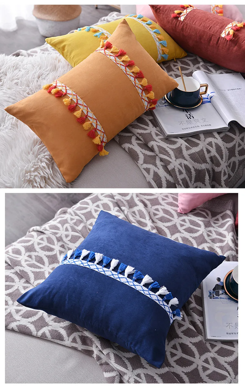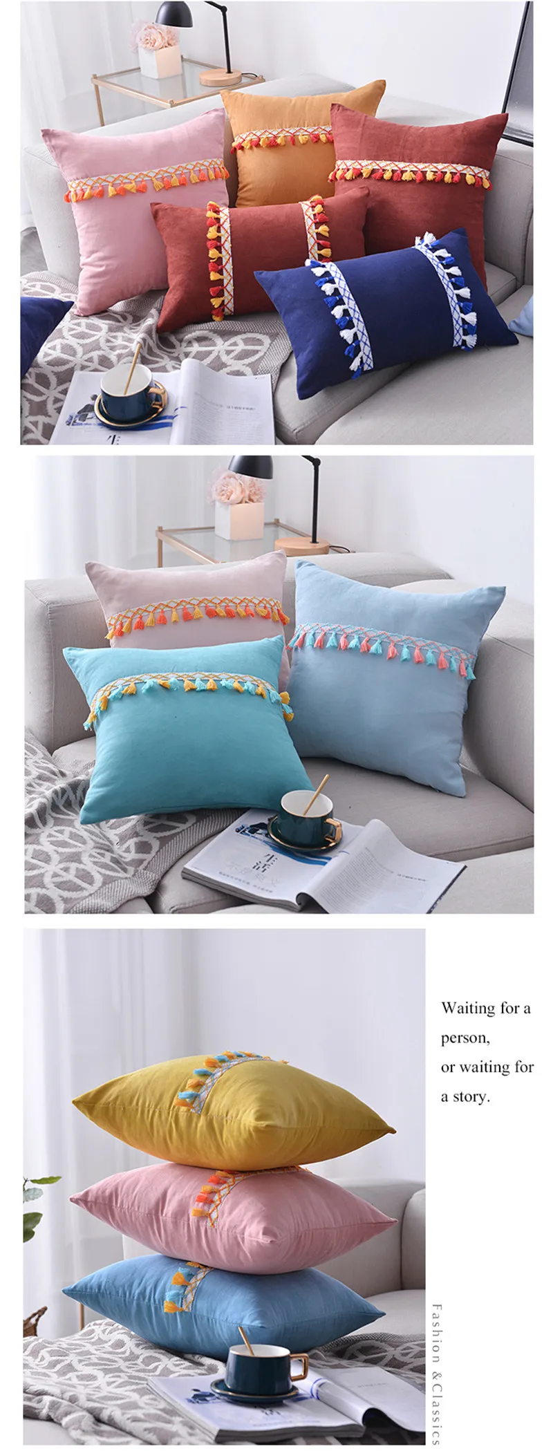 Мягкая замшевая наволочка Ретро подушка с кисточками однотонная наволочка для дивана Наволочка украшения для дома Funda Cojin