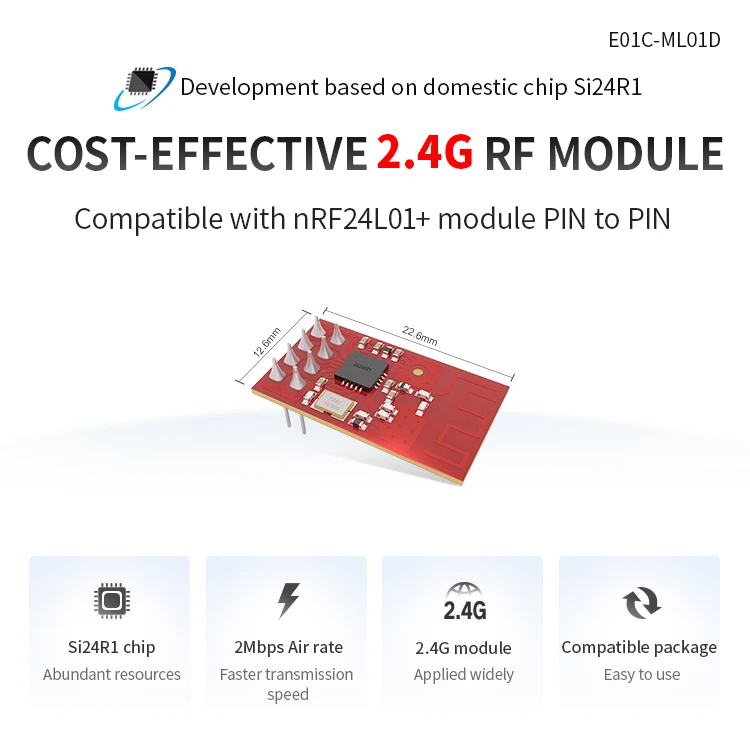 Модуль Ebyte SI24R1, 0 дБм, 300 м, маленький размер, SPI, 2,4 ГГц, с антенной PCB