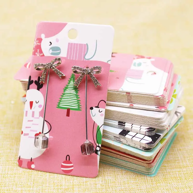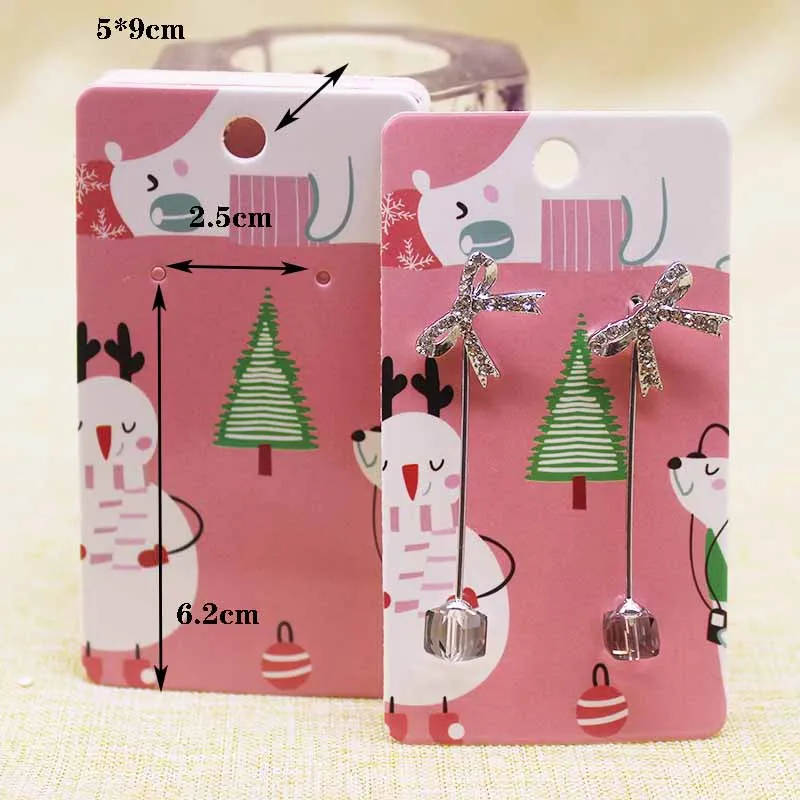 Горячая распродажа 50 шт., упаковка для ювелирных изделий, 5*9 см, Рождественская упаковка для серег посылка