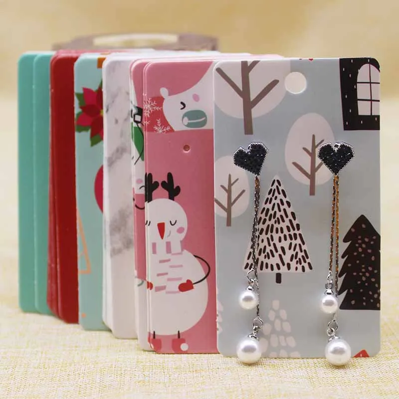 Новая горячая распродажа 50 шт печатная висячая упаковка для серег карта 5*9 см marbling Рождество/Любовь цветок дизайн длиннее серьги бирка карта